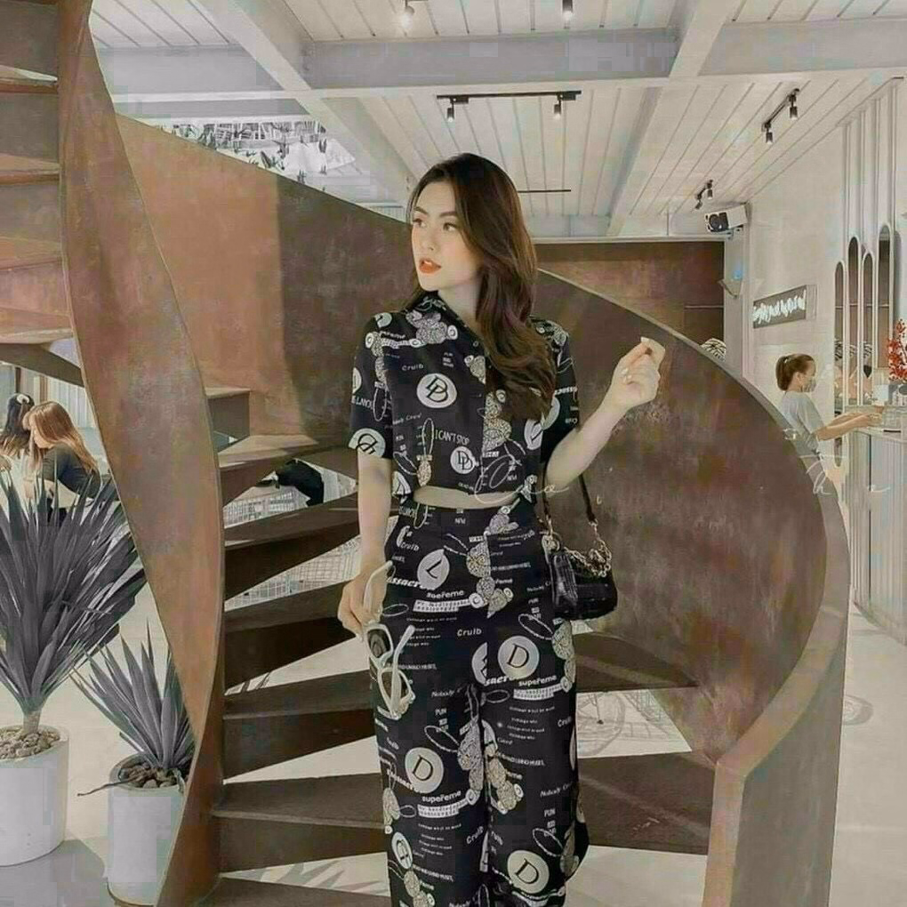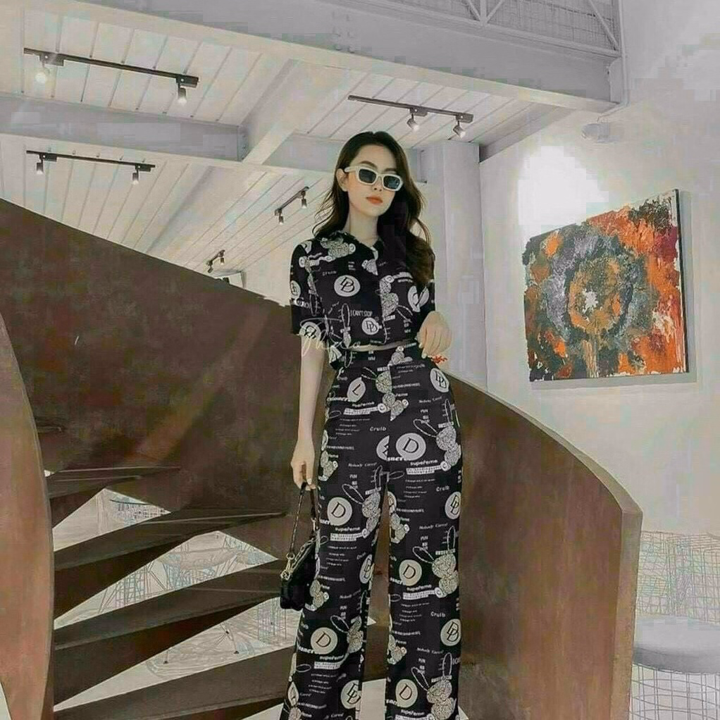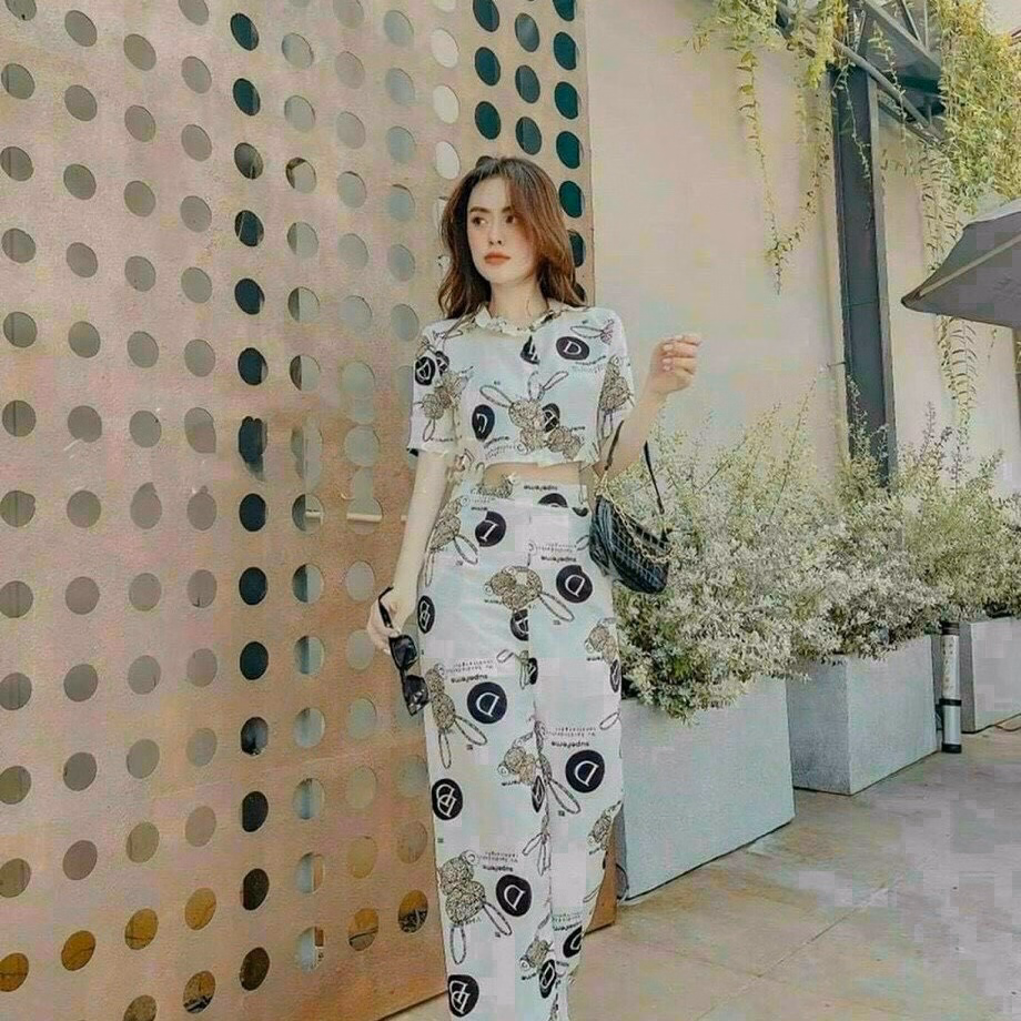 Tên sản phẩm: Set bộ ống rộng cài nút thật chất thun in 3D V181 -Cloudy Dress