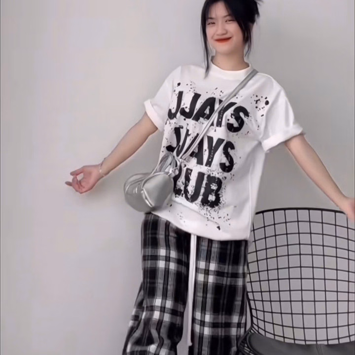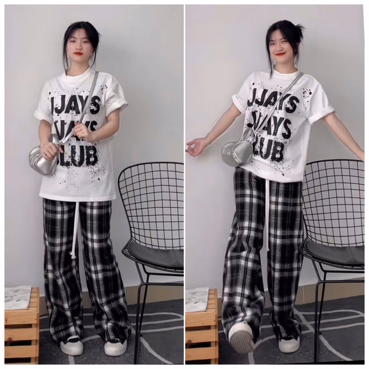 Sét Bộ Quần Caro Đen + Mix Áo Phông Form Rộng Sơn Chữ -Jjayss Club