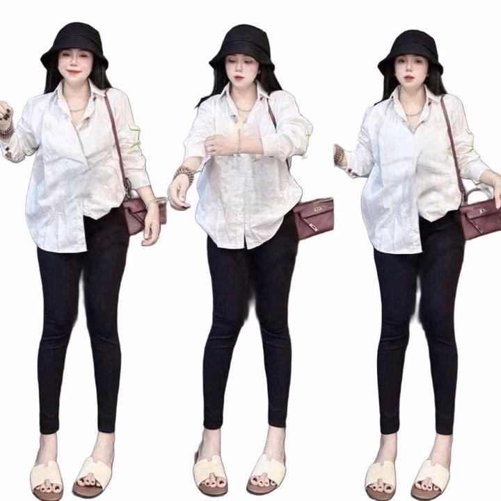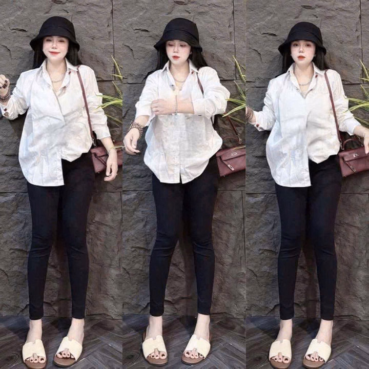 Sét Bộ Quần Legging Dài 95Cm+Mix Áo Sơ Mi Trắng Dài Tay Form Rộng