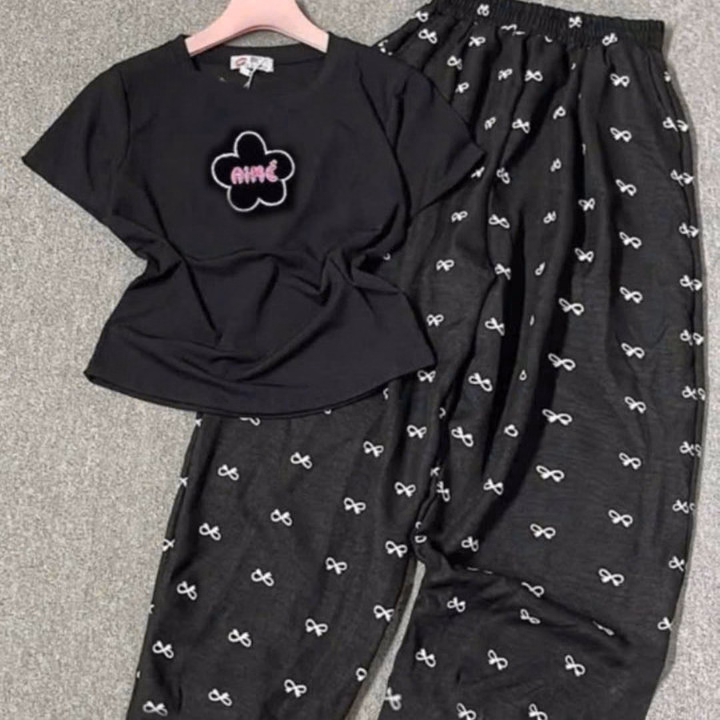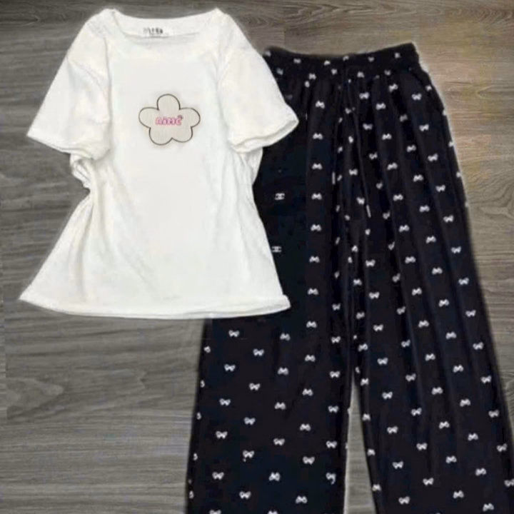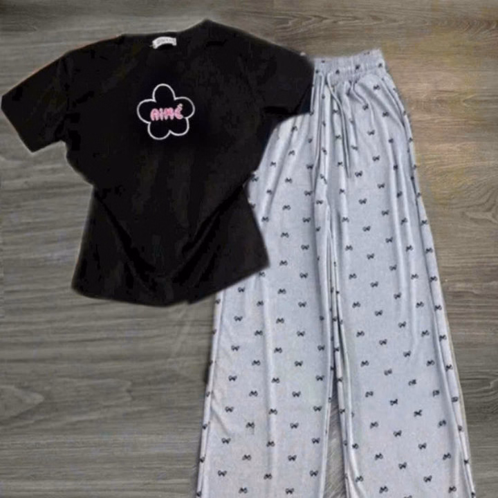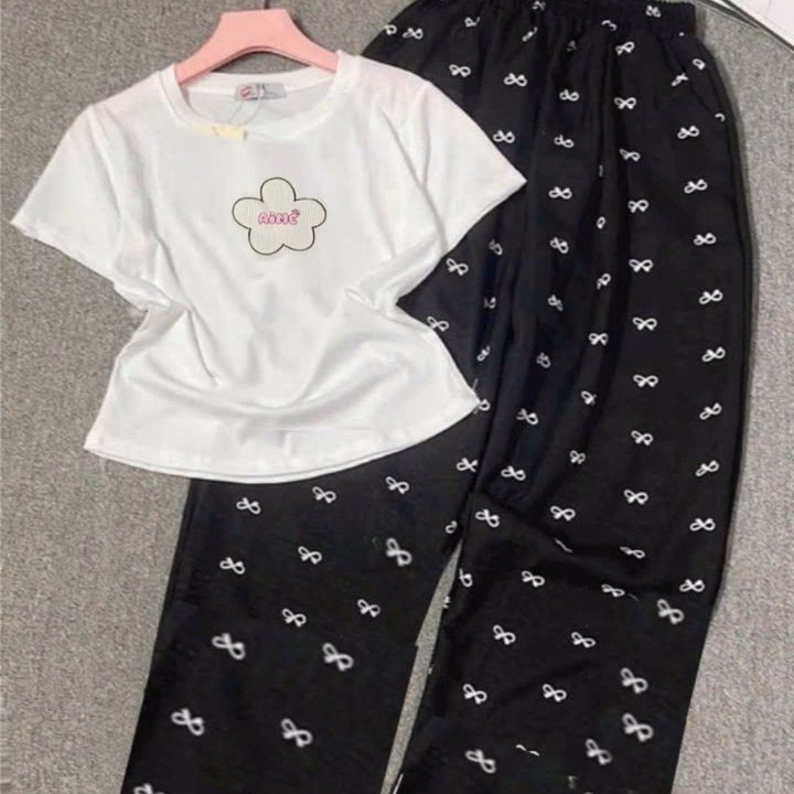 Sét Bộ Quần Ống Rộng Nơ + Mix Áo Croptop Thêu Bông Hoa
