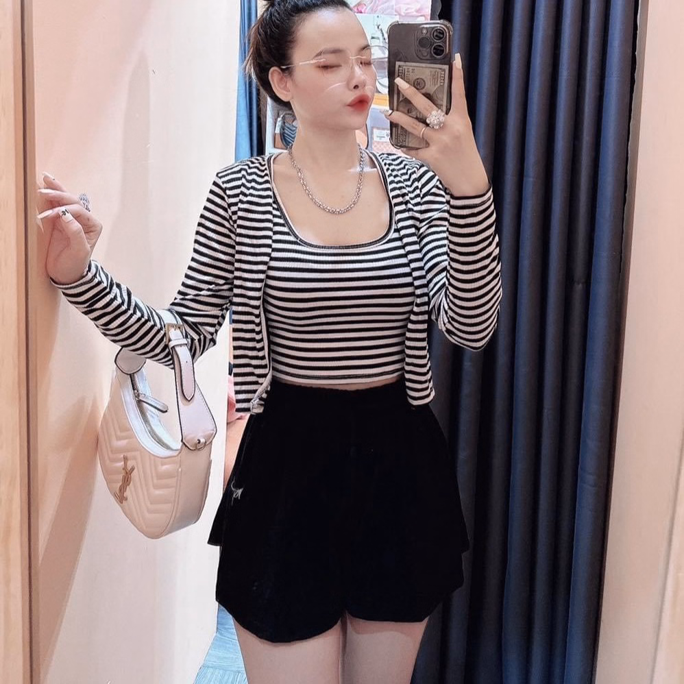 Set gồm 3 sản phẩm ; 1 áo khoác tay dài, 1 áo 2 dây, 1 quần đũi xòe ống