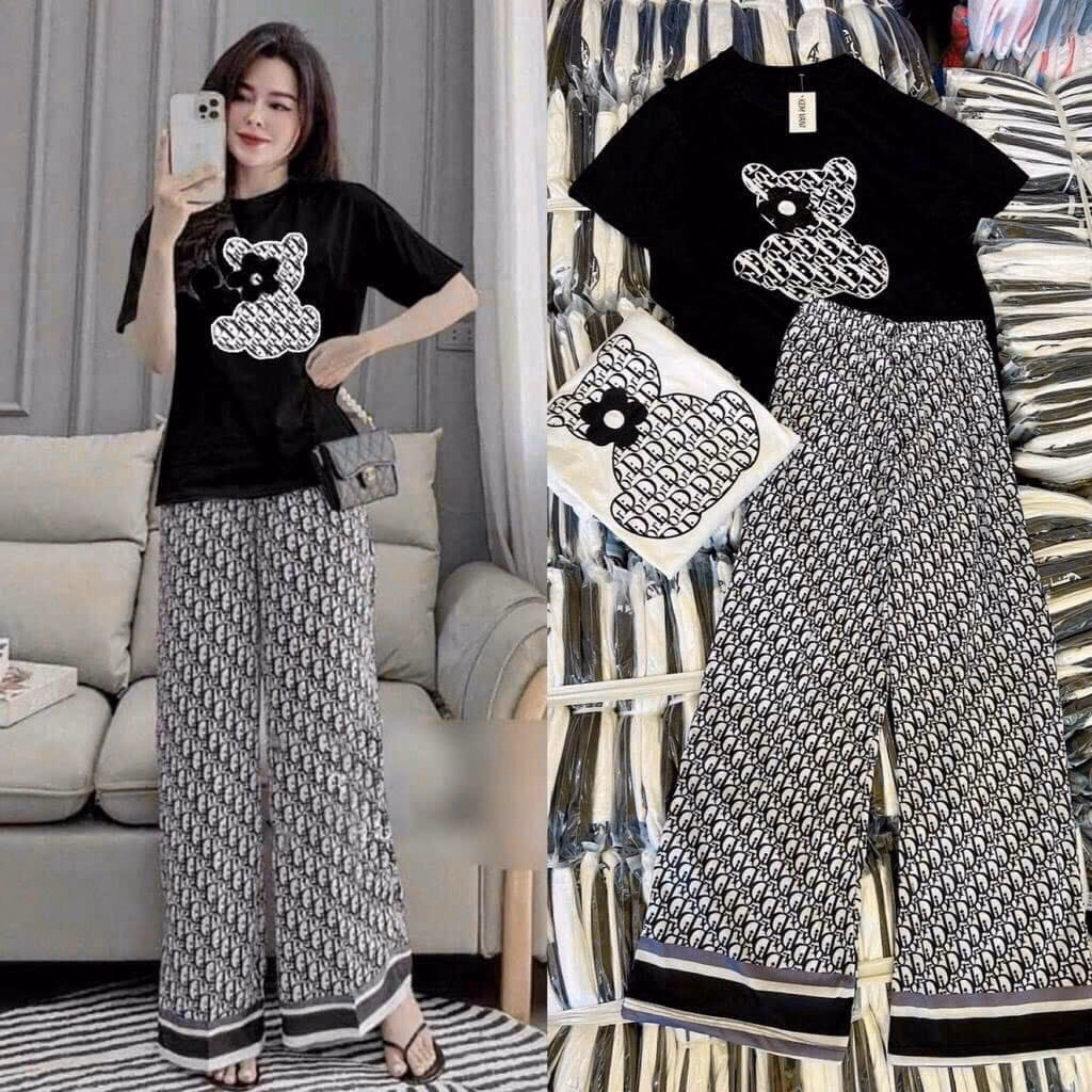 Set Bộ Thun Nữ In 3D Mix Quần Dài Ống Suông Sa52 – Sam Store