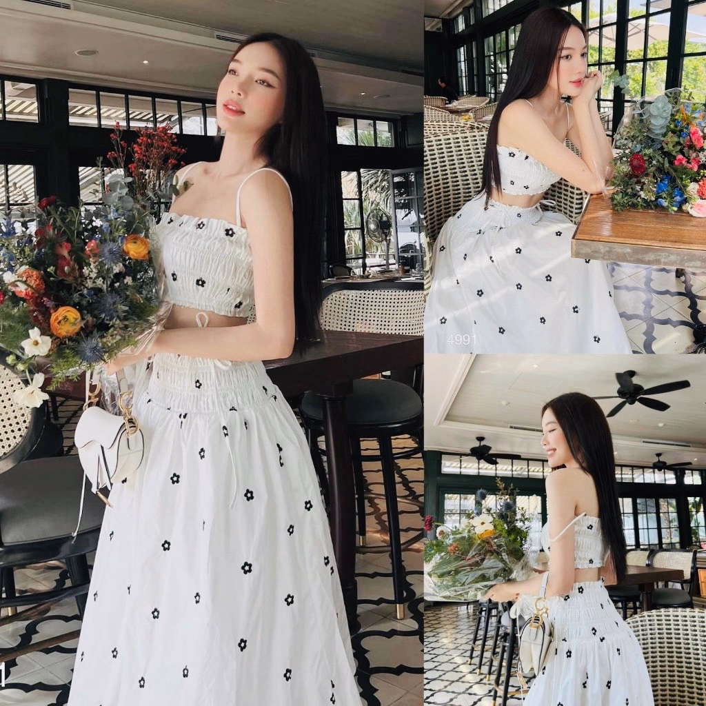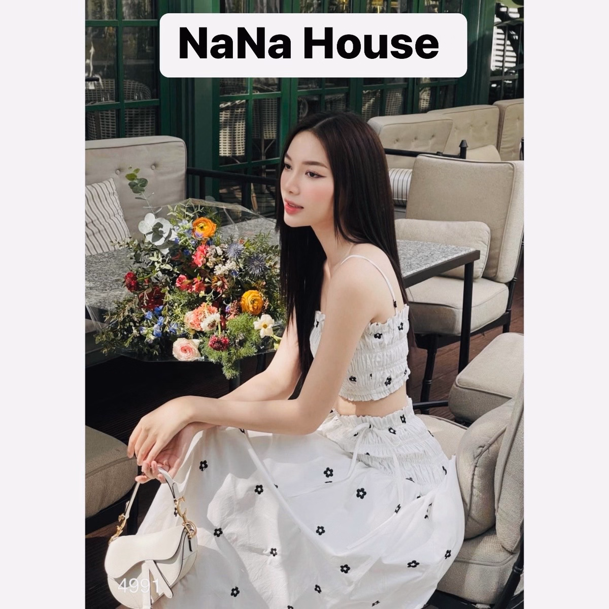Set Bộ Váy Nữ Áo Moking 2 Dây Xếp Li Ngực Mix Chân Váy Xòe Hoa Dd521 – Nana House
