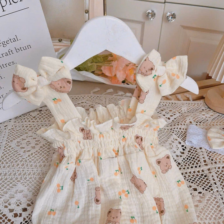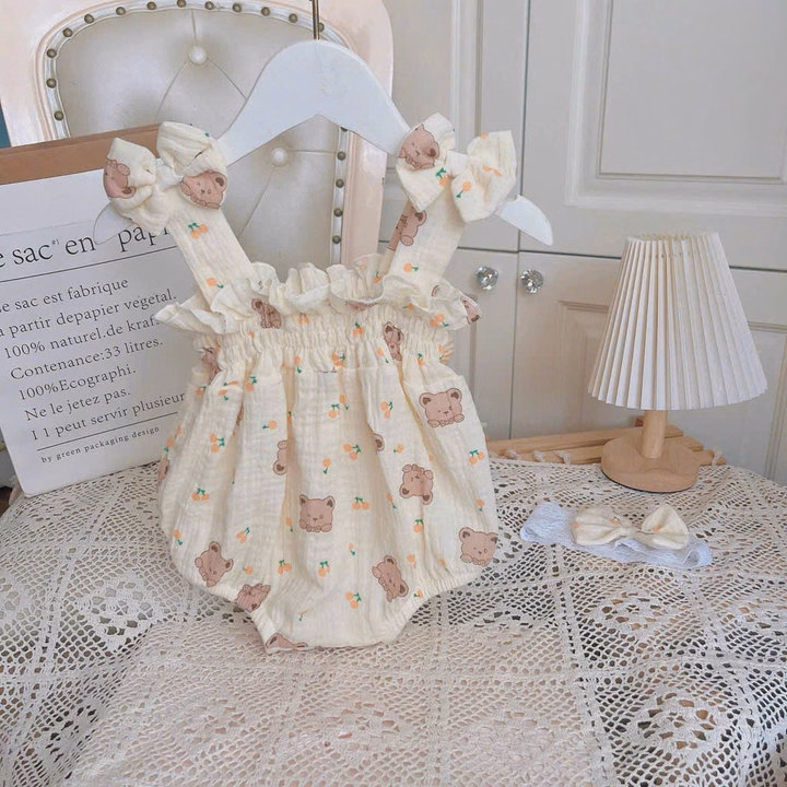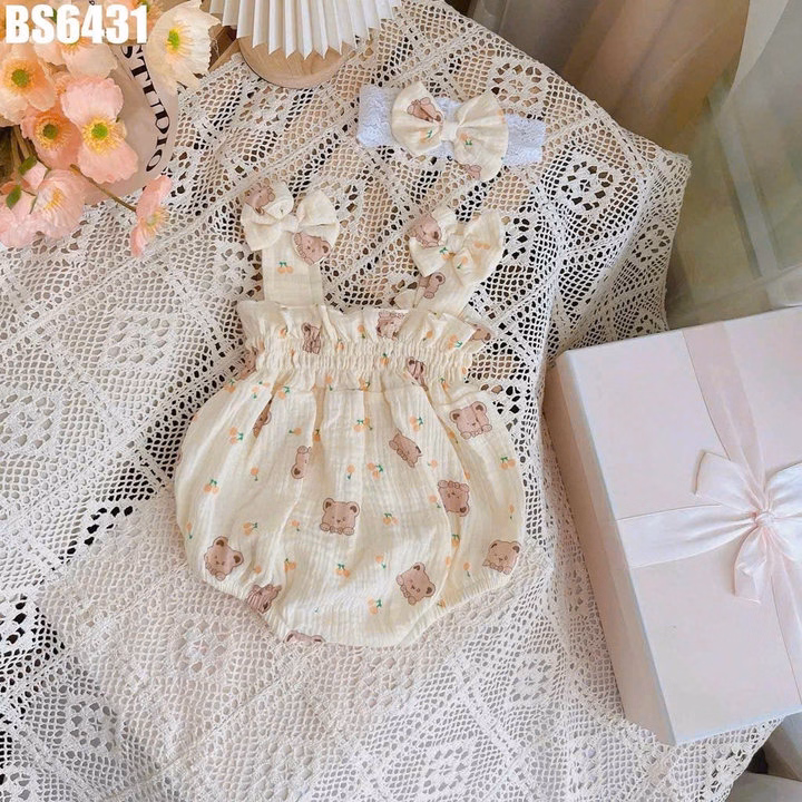 Set Body 2 Dây Họa Tiết Gấu Kèm Băng Đô Cho Bé Gái Sơ Sinh 1 2 Tuổi