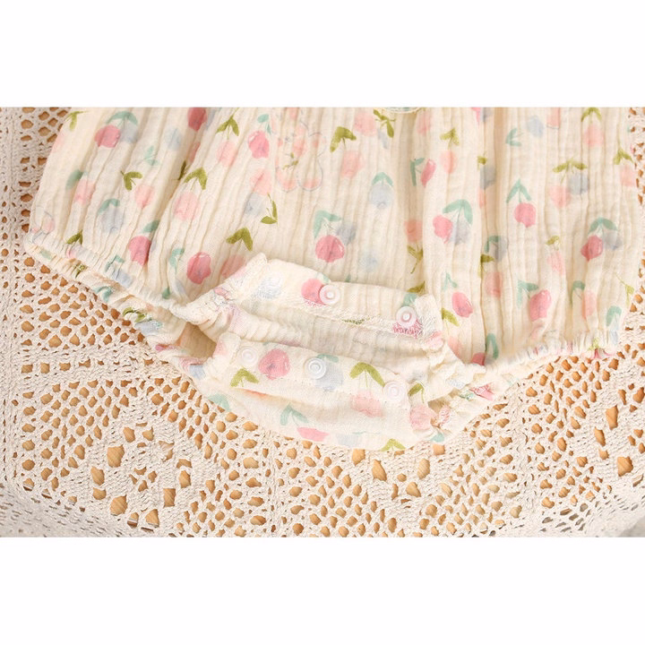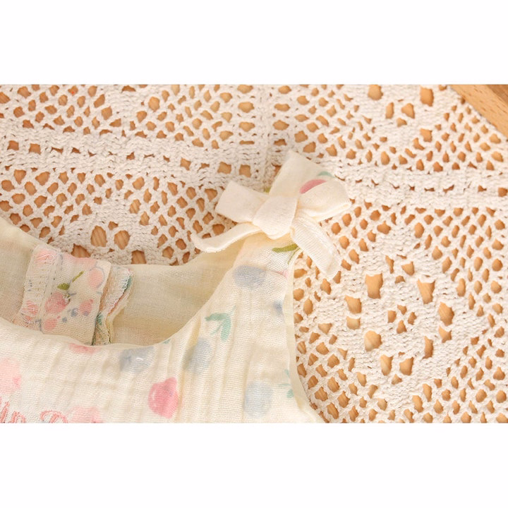 – Thiết kế : Bộ body liền thân cho bé gái kèm mũ vải cùng họa tiết. Dáng sát nách, thiết kế nhún nhẹ phần ngực, có nơ hai bên vai và bo chun phần ống quần tạo độ phồng dễ thương