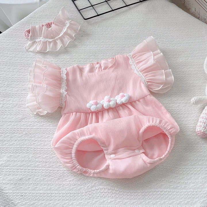 Set Body Cánh Tiên Đính Hoa Màu Hồng Kèm Băng Đô Cho Bé Gái Sơ Sinh 1 2 Tuổi Từ 3-11kg Dành Cho Bé Gái