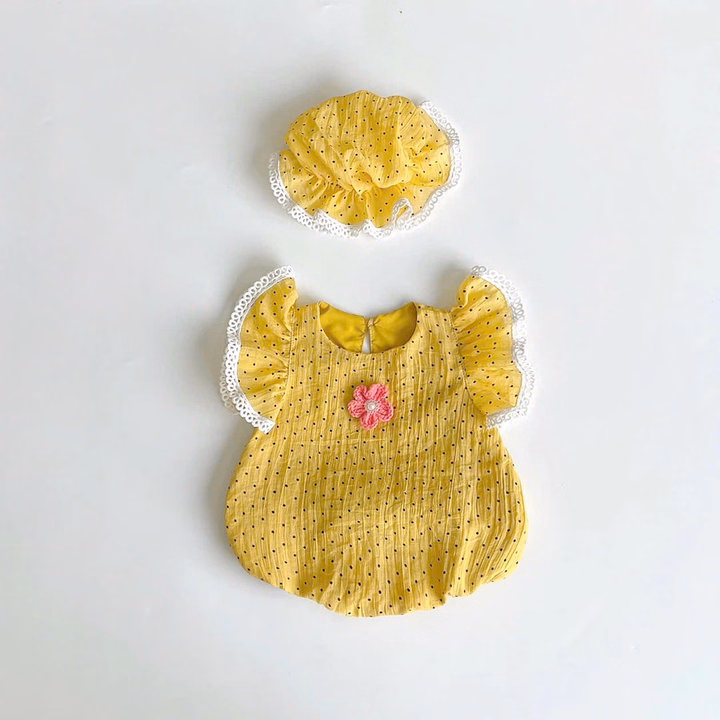 – Thiết kế : Dạng body liền quần, tay bèo. Dáng phồng nhẹ tạo sự dễ thương và thoải mái cho bé.
