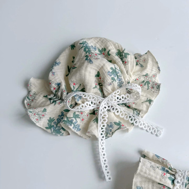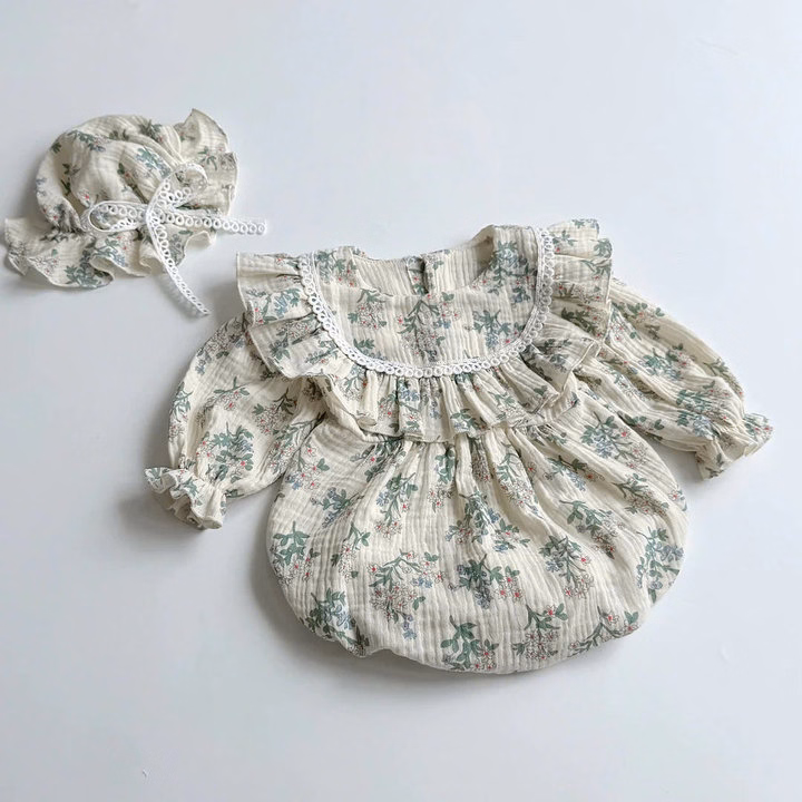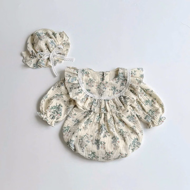 Set Body Tay Dài Hoa Tiết Hoa Nhí Cổ Yếm Cho Bé Gái Sơ Sinh 1 2 Tuổi Từ 3-11Kg Dành Cho Bé Gái