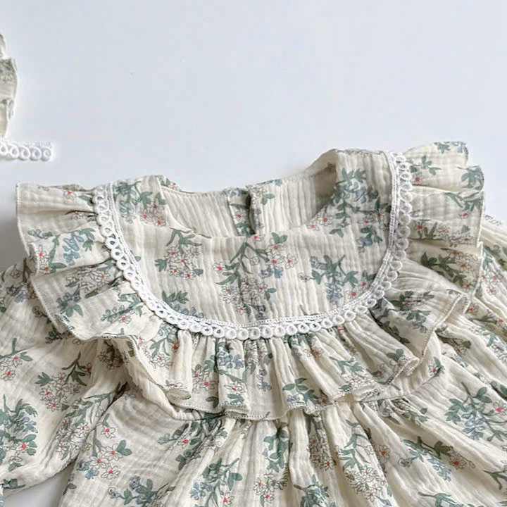 Set Body Tay Dài Hoa Tiết Hoa Nhí Cổ Yếm Cho Bé Gái Sơ Sinh 1 2 Tuổi Từ 3-11kg Dành Cho Bé Gái