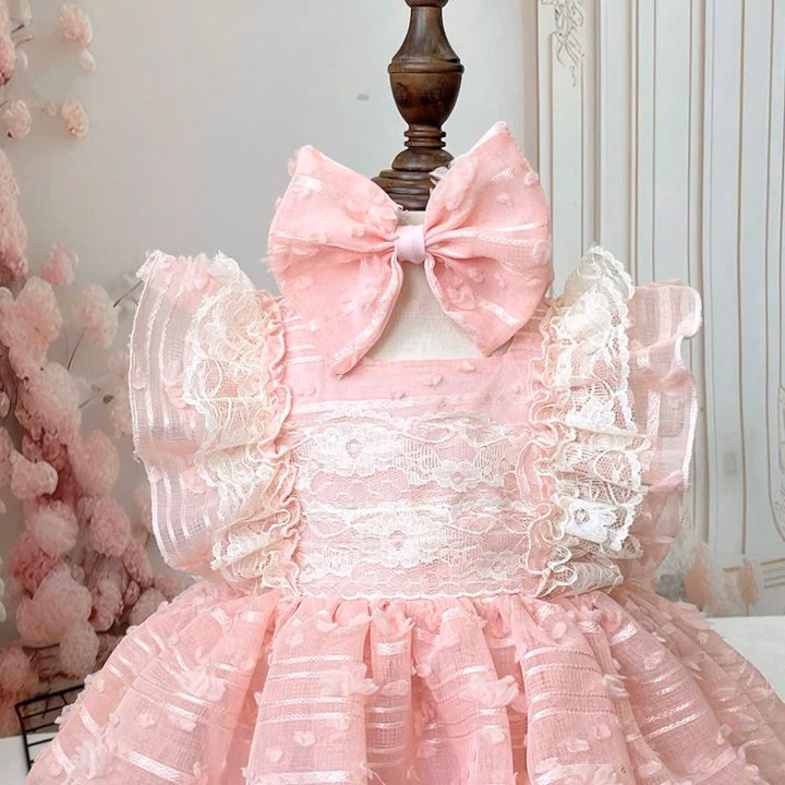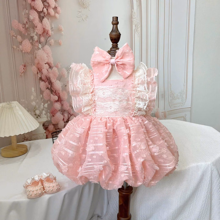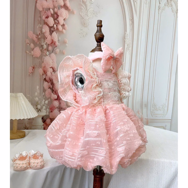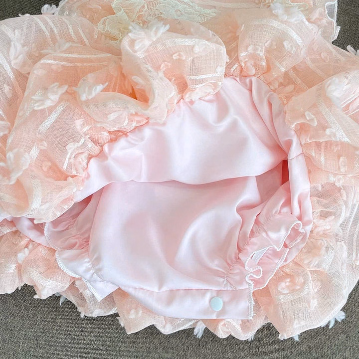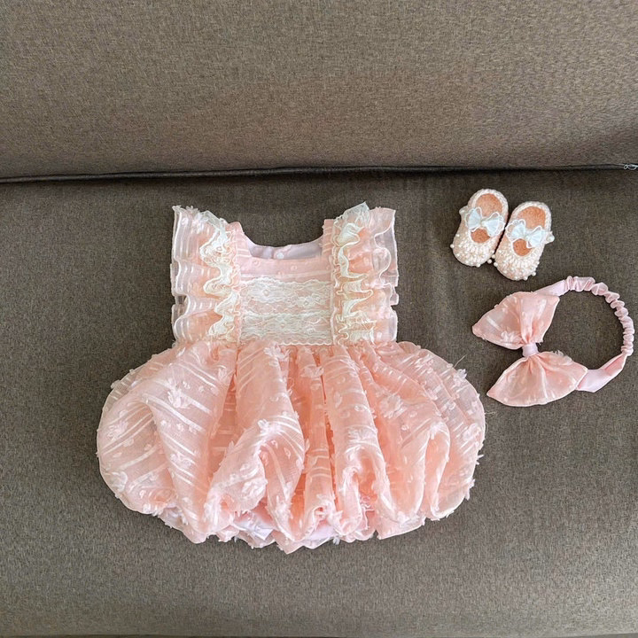 Set Body Váy Bí Voan Hoa Nổi Hồng Cho Bé Gái Sơ Sinh 1 2 Tuổi Từ 3-11Kg Dành Cho Bé Gái