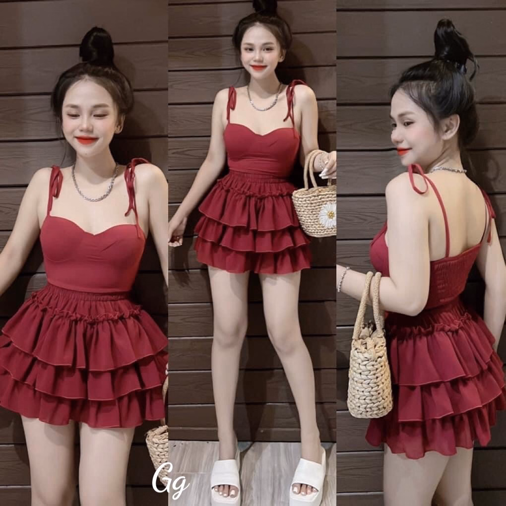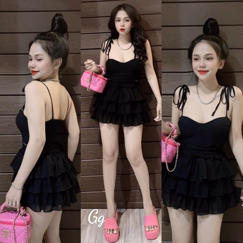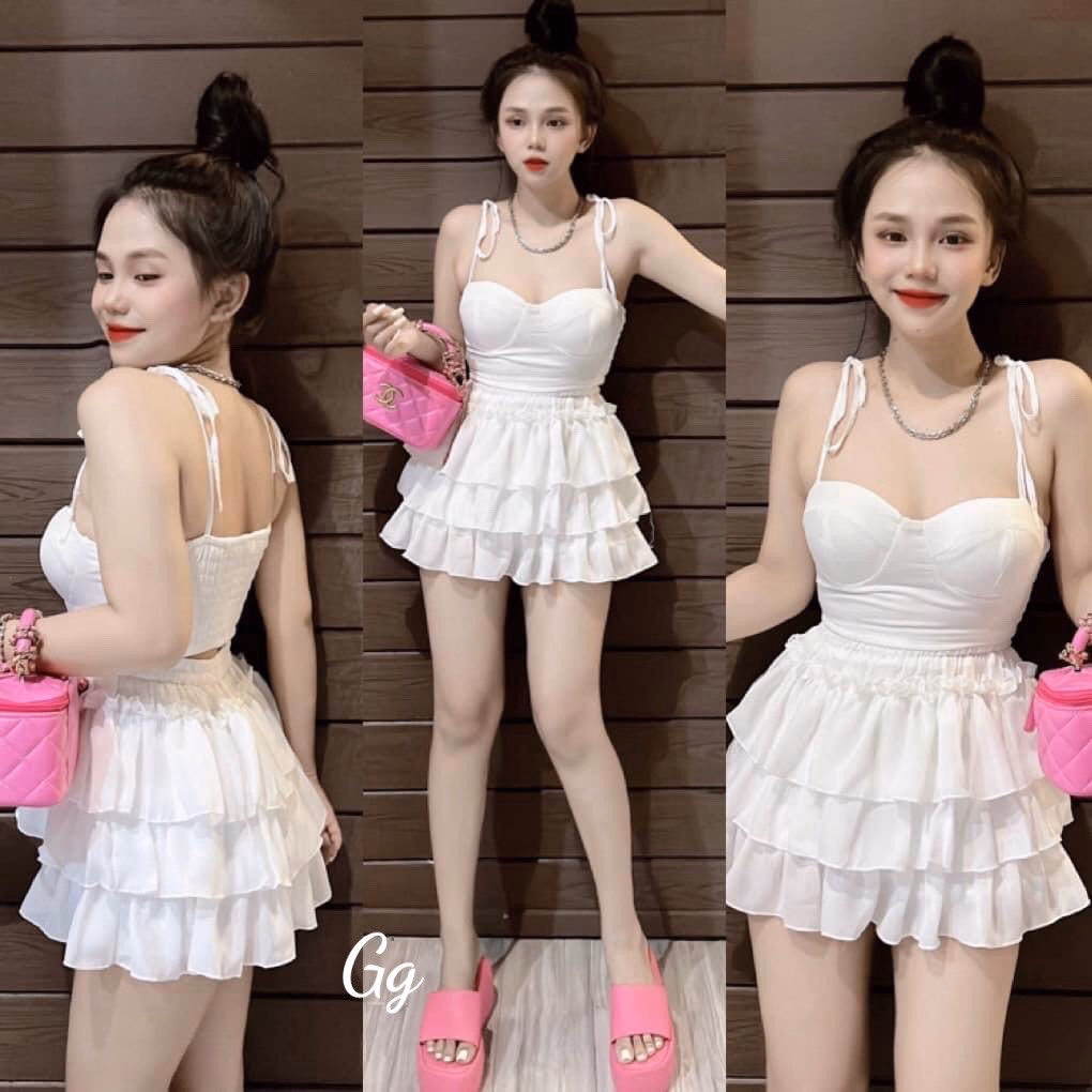 Set Chân Váy 3 Tầng Phối Áo 2 Dây Cột Nữ Tính – Ausa House