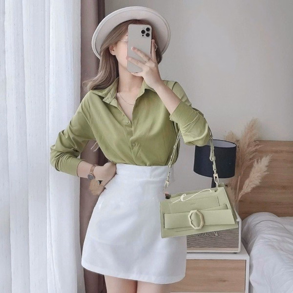 Set Chân Váy Có Lót Kèm Áo Sơ Mi Cài Nút Thật V50 – Haka Mây