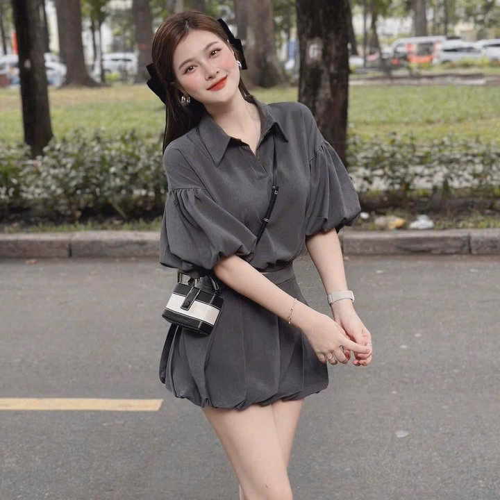 Set Cotton Lạnh Tay Phồng Chân Váy Bí Bồng Khóa Kéo Hông Bt105Yt