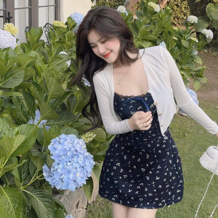 Set Đầm 2 Dây Hoa Nhí Phối Áo Khoác Thun Tăm Bt83Ws-Sam Store