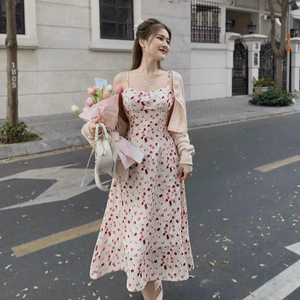 Tên sản phẩm: Set Đầm 2 Dây Xốp Hoa Kèm Áo Khoác T1005 – Aine