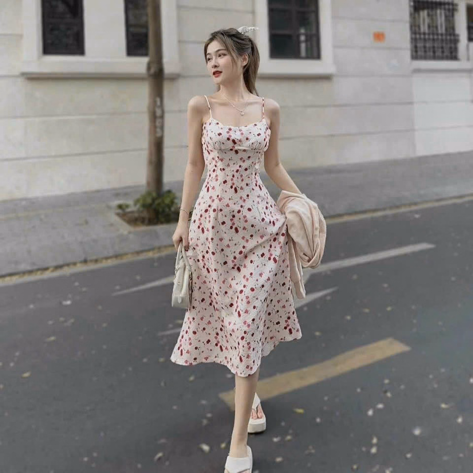 Set Đầm 2 Dây Xốp Hoa Kèm Áo Khoác T1005 – Aine