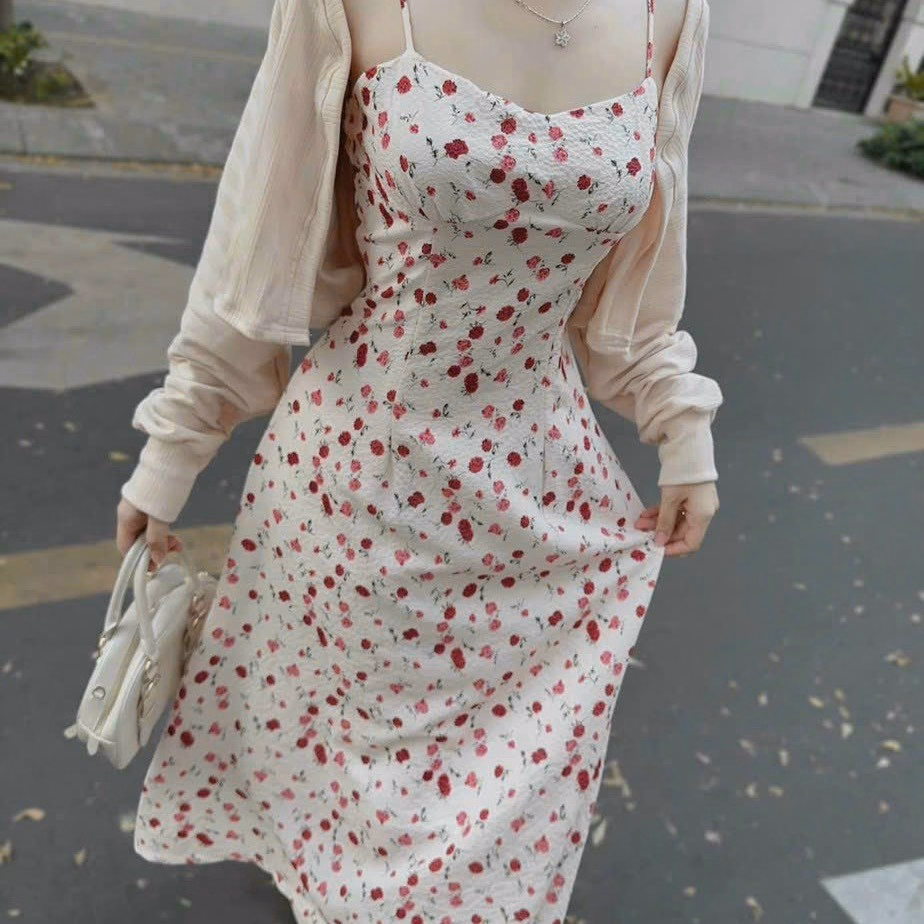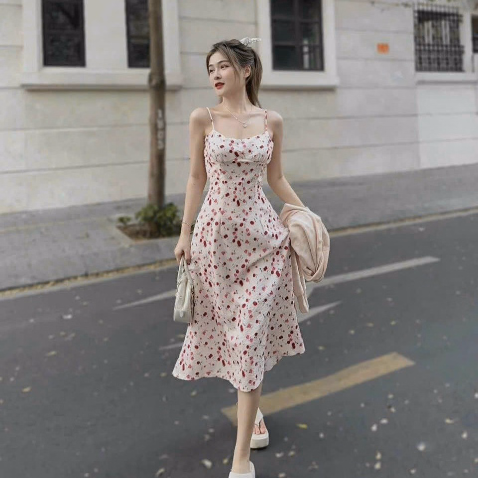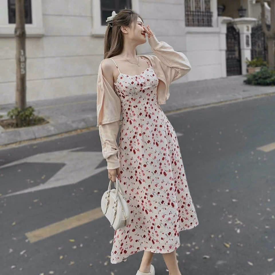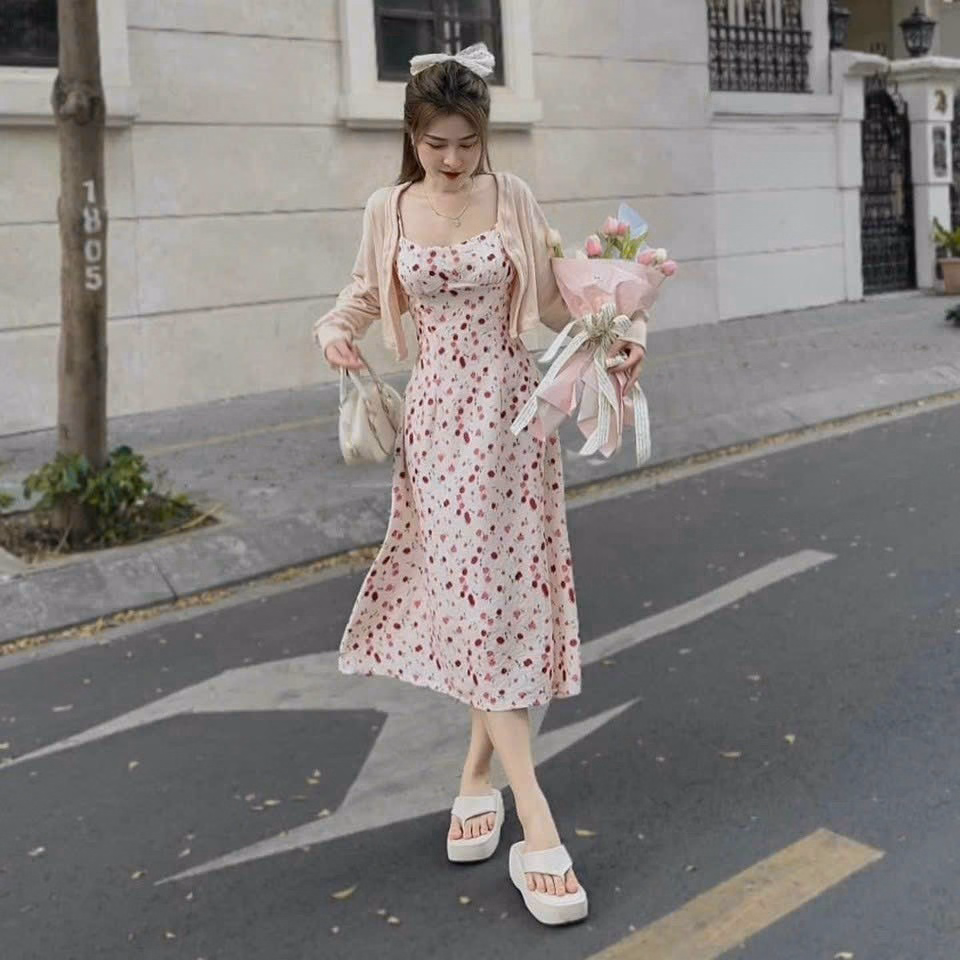 Tên sản phẩm: Set Đầm 2 Dây Xốp Hoa Kèm Áo Khoác T1005
