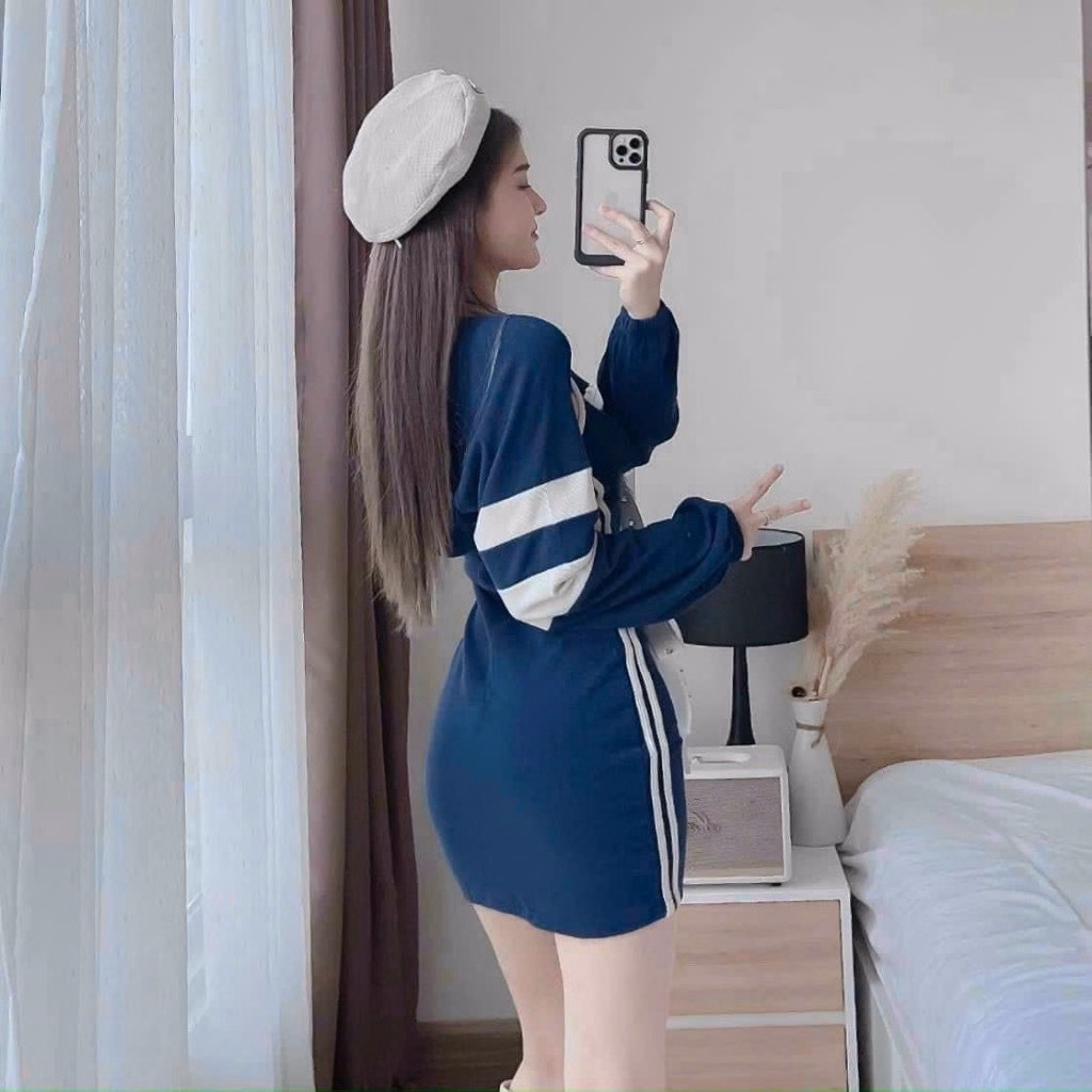 Đầm chất vải thun gân co giãn thoải mái, áo khoác tay dài thun gân mềm mại, thoáng mát, thoải mái khi mặc.
