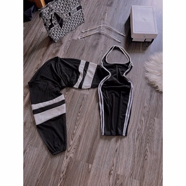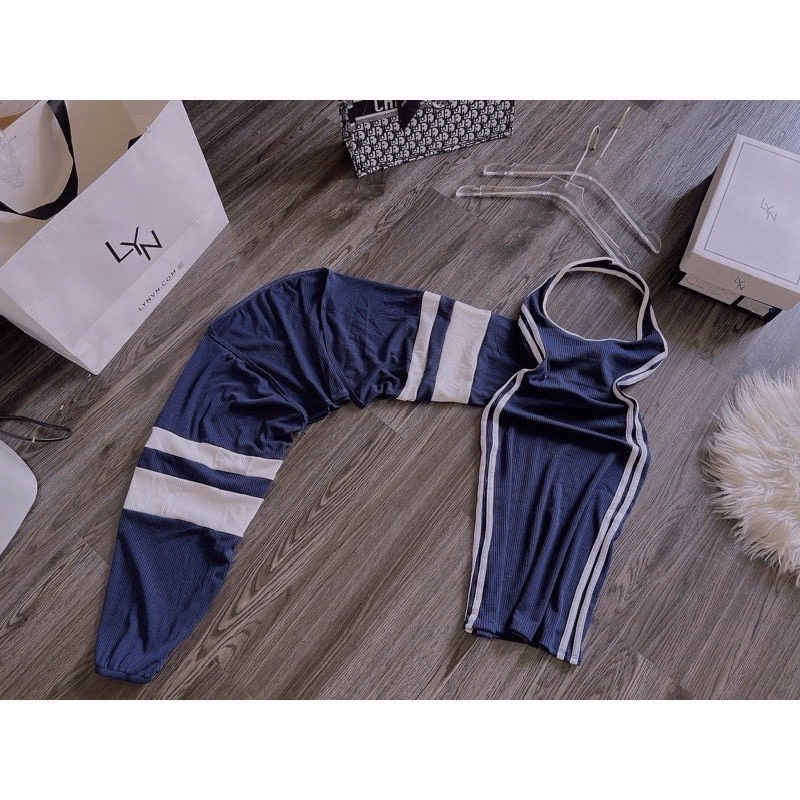 Set đầm body hai dây kèm áo khoáctay dàivừa tiện lợi vừa thời trang.