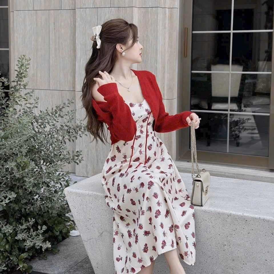 Set Đầm Lụa Ý(Có Mút) Kèm Áo Khoác Cột Dây Gân Tăm Lạnh Dd1103 – Nana House