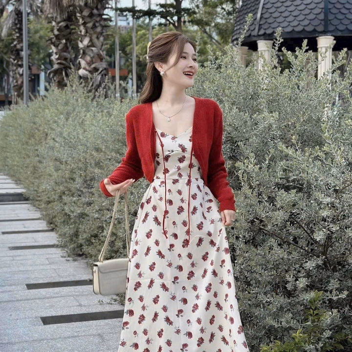 Set Đầm Lụa Ý(Có Mút) Kèm Áo Khoác Cột Dây Gân Tăm Lạnh Sh1000 – Sam Store