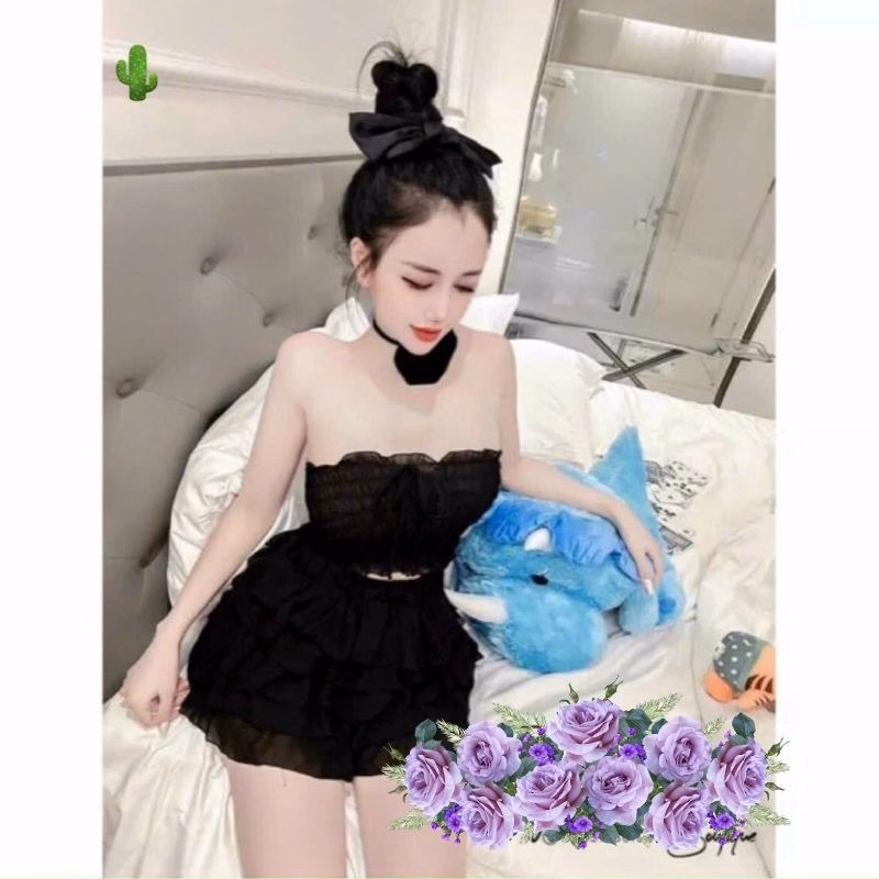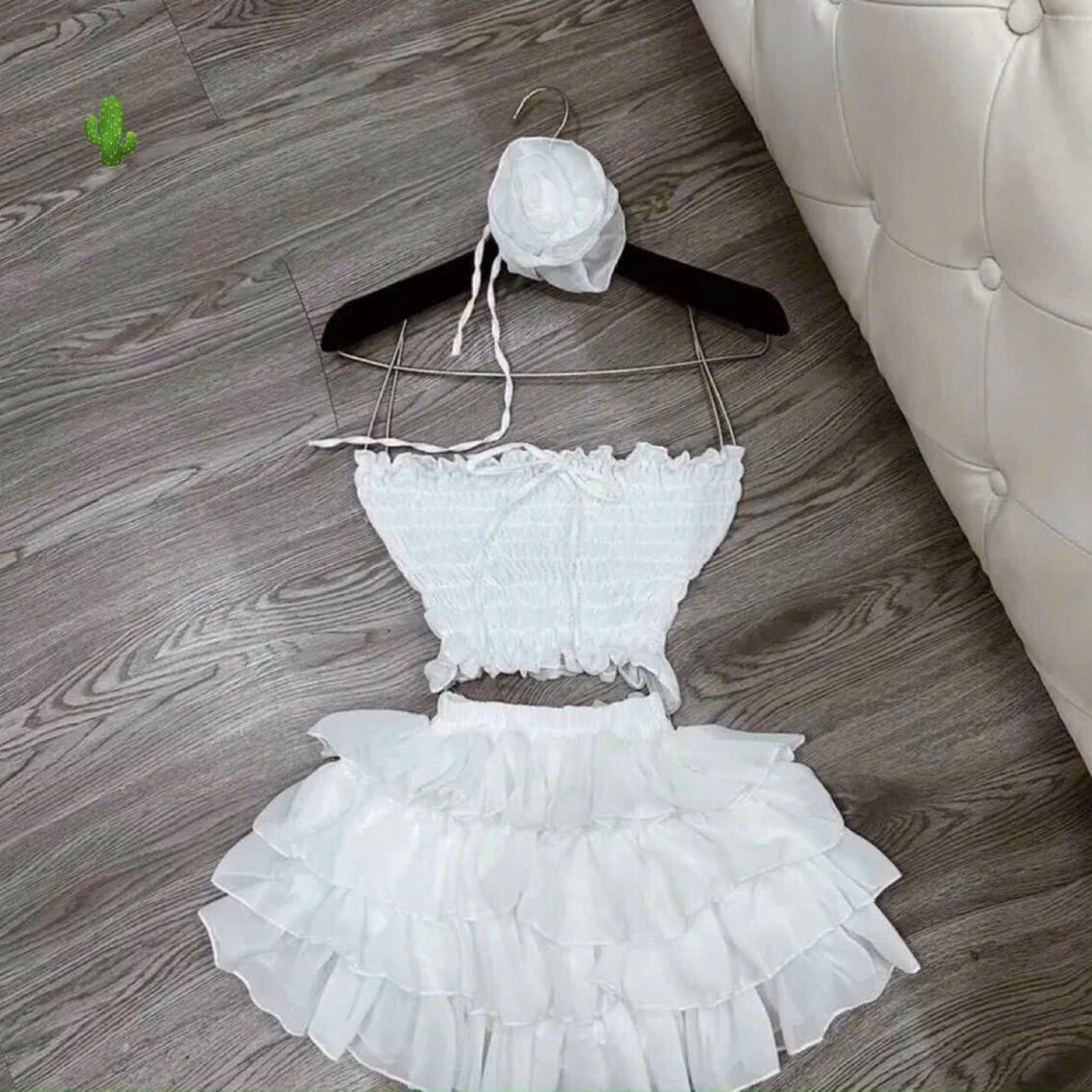 Set Đầm Nữ Voan Bèo Nhúng Nhiều Tầng Đính Hoa Cổ Rời – Ausa House