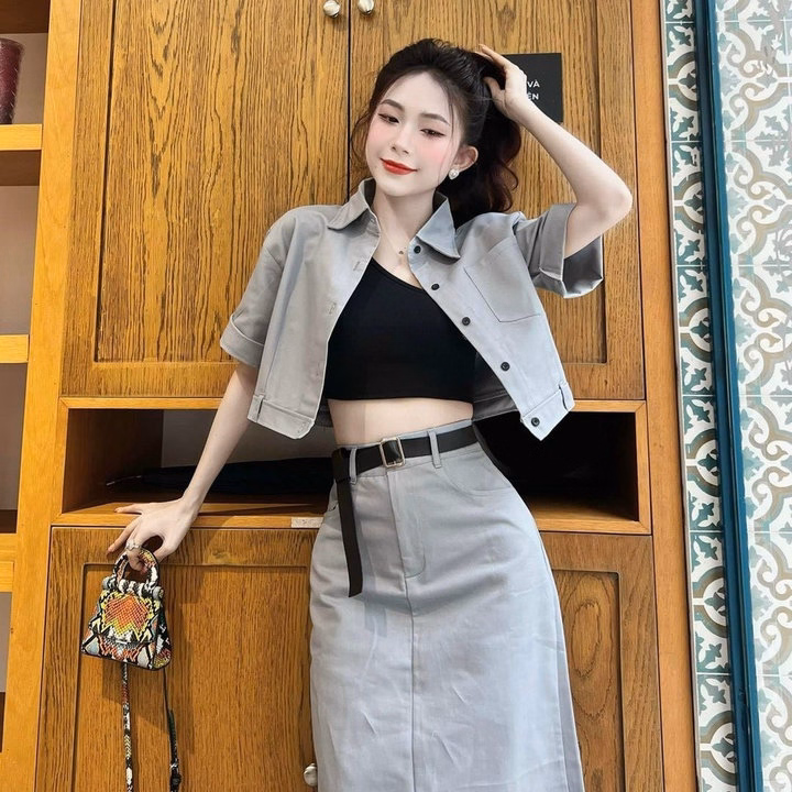 Set Đầm Váy Áo Khoác Kaki Kèm Nịt Mix Áo Thun Tăm Lạnh Sh1108- Sam Freesize < 53kg - Váy kiểu dáng đơn giản, nhẹ nhàng nhưng không kém phần sang trọng, năng động trẻ trung.. - Mùa hè nóng nực diện em váy này đi làm,đi chơi hay cà phê, đều đẹp thoải mái ạ - Chất vải mặc nhẹ nhàng, thoáng mát - Kiểu dáng: đơn giản, năng động,trẻ trung ☘ Form: Freesize (40-53kg tùy chiều cao) ☘ V1 ( Vòng ngực): dưới 92cm ☘ V2 (Vòng Eo): dưới 78cm ☘V3 : Dưới 92cm ☘ 1m50 – 1m55 từ 40 – 46kg vừa ☘ 1m55 – 1m6 từ 47 – 53kg vừa Chất liệu : Áo Thun Tăm Lạnh - Váy,Áo Khoác Kaki Kích thước : Freesize < 53kg Xuất xứ : Việt Nam Lưu ý : - Do sự chênh lệch về cài đặt ánh sáng và màn hình,màu sắc của sản phẩm thực tế có sự chênh lệch nhẹ so với thực tế. - Do đo lường thủ công khác nhau,có thể có sai số 1-3cm nhưng trong phạm vi cho phép. - Giặt riêng sản phẩm Mới bằng tay với nước lạnh và phơi khô tự nhiên (tuyệt đối không sử dụng sản phẩm với các loại bột giặt có chất tẩy cao) - Lộn mặt trái trước khi giặt để đảm bảo độ bền màu của sản phẩm. - Quý khách nhận được hàng nếu có thắc mắc vui lòng liên hệ shop trước khi đánh giá sản phẩm.Quý khách nhận được hàng,ưng sản phẩm cho shop xin 1 đánh giá 5 sao kèm hình ảnh sản phẩm nhé. - Một số sản phẩm của shop là hàng Freesize, shop đều ghi rõ số kg, màu sắc,chất liệu đều được cung cấp rõ ràng.Những trường hợp sản phẩm bị lỗi,rách hoặc sản phẩm không giống hình hay kém chất lượng,khách phải cung cấp video khi khui hàng giúp shop nhé.