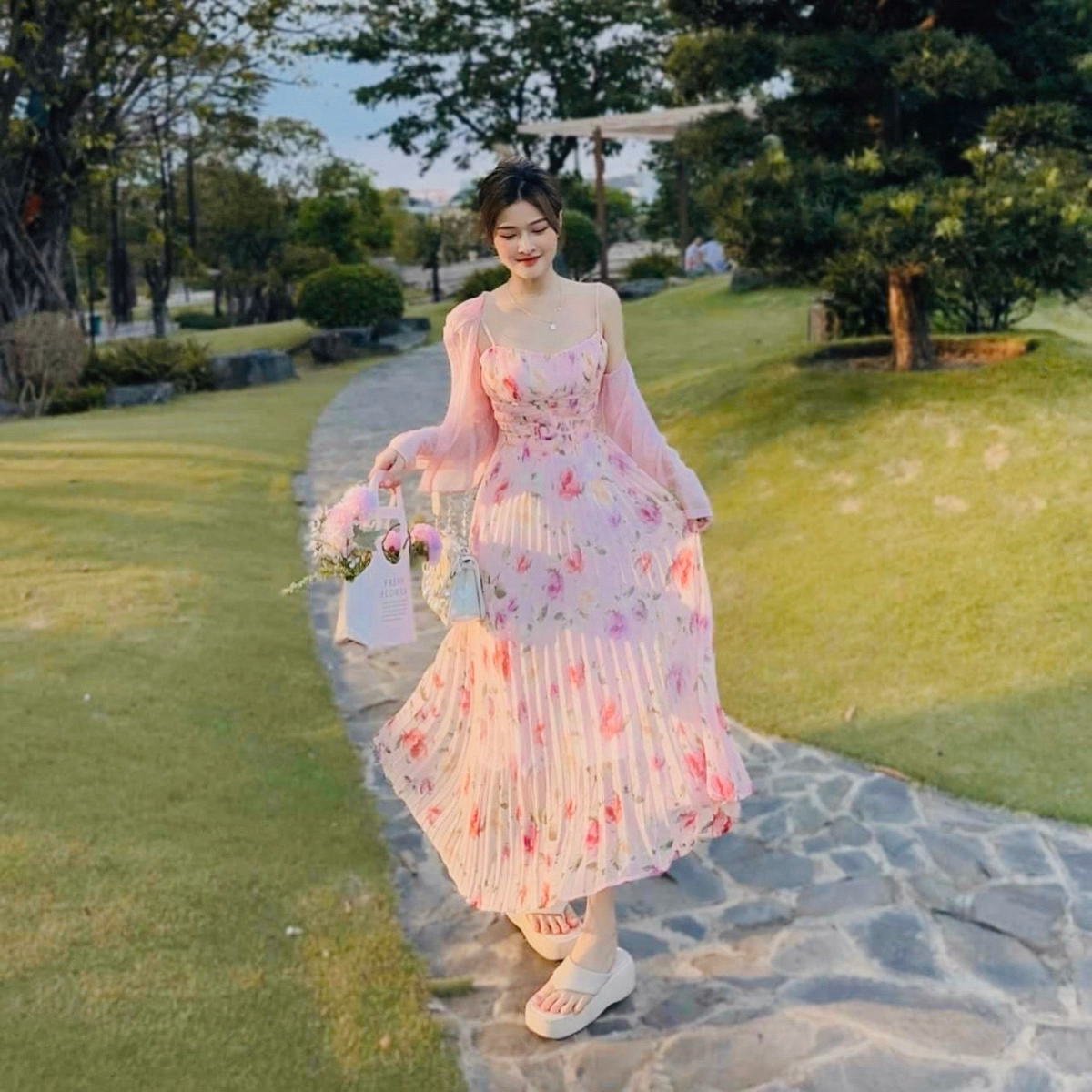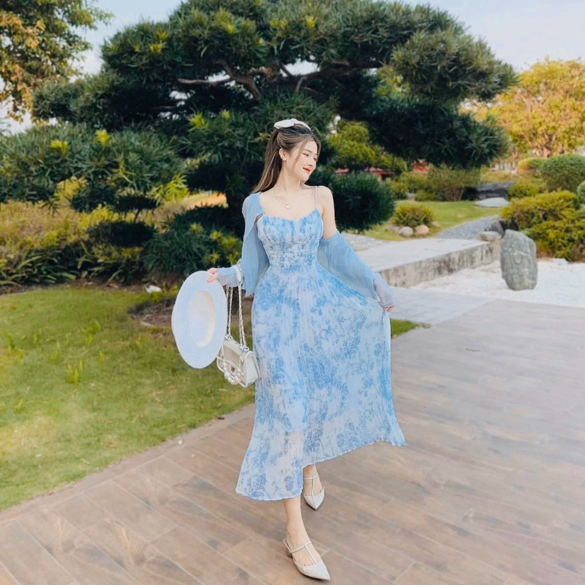 Set Đầm Váy Nữ 2 Dây Maxi Đi Biển Voan Bông Dd410 – Nana Freesize < 53kg Set bộ đồ váy nữ 2 dây maxi đi biển voan bông xinh xắn với 2 tone màu hồng, xanh sáng da dành cho các tình yêu - Váy kiểu dáng đơn giản, nhẹ nhàng nhưng không kém phần sang trọng, năng động trẻ trung.. - Mùa hè nóng nực diện e váy này đi chơi ,đi biển hay , cà phê, đều đẹp thoải mái ạ - Chất vải mặc nhẹ nhàng, thoáng mát - Kiểu dáng: đơn giản, năng động,trẻ trung ☘️ Form: Freesize (40-53kg tùy chiều cao) ☘️ V1 ( Vòng ngực): dưới 92cm ☘️ V2 (Vòng Eo): dưới 78cm ☘️ V3 : Dưới 92cm ☘️ 1m50 – 1m55 từ 40 – 46kg vừa ☘️ 1m55 – 1m6 từ 47 – 53kg vừa Chất liệu : Váy Voan Bông - Áo Khoác Tơ Kích thước : Freesize < 55kg Màu săc : Hoa Xanh - Hoa Hồng Xuất xứ : Việt Nam Lưu ý : - Do sự chênh lệch về cài đặt ánh sáng và màn hình,màu sắc của sản phẩm thực tế có sự chênh lệch nhẹ so với thực tế. - Do đo lường thủ công khác nhau,có thể có sai số 1-3cm nhưng trong phạm vi cho phép. - Giặt riêng sản phẩm Mới bằng tay với nước lạnh và phơi khô tự nhiên (tuyệt đối không sử dụng sản phẩm với các loại bột giặt có chất tẩy cao) - Lộn mặt trái trước khi giặt để đảm bảo độ bền màu của sản phẩm. - Quý khách nhận được hàng nếu có thắc mắc vui lòng liên hệ shop trước khi đánh giá sản phẩm. -Quý khách nhận được hàng,ưng sản phẩm cho shop xin 1 đánh giá 5 sao kèm hình ảnh sản phẩm nhé. - Một số sản phẩm của shop là hàng Freesize, shop đều ghi rõ số kg, màu sắc,chất liệu đều được cung cấp rõ ràng.Những trường hợp sản phẩm bị lỗi,rách hoặc sản phẩm không giống hình hay kém chất lượng,khách phải cung cấp video khi khui hàng giúp shop nhé.