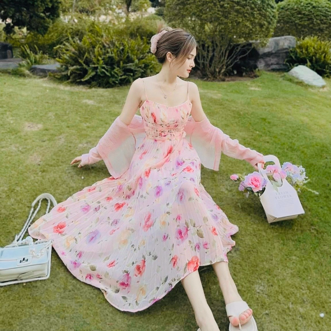 Set Đầm Váy Nữ 2 Dây Maxi Đi Biển Voan Bông Dd410 – Nana House