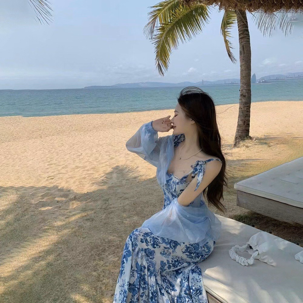 Set Đầm Váy Nữ Lụa Hoa Cột Nơ Mix Áo Khoác Voan Kiếng Dd101- Nana House