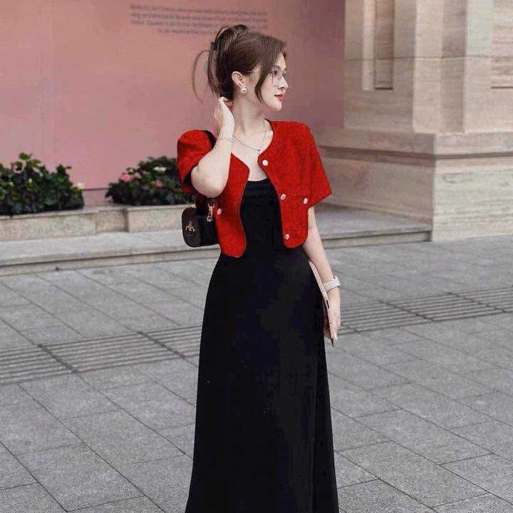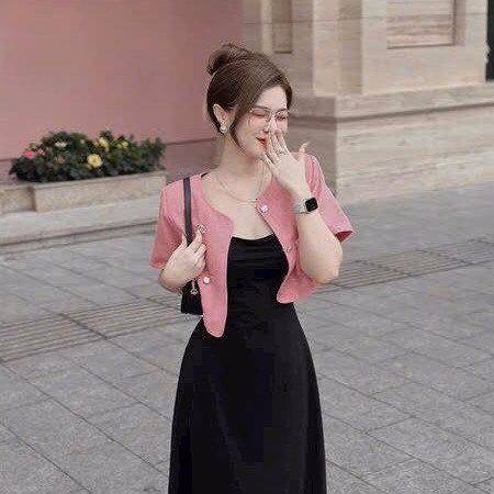 Set Đầm Váy Nữ Thun Borip 2 Dây Mix Áo Khoác Linen Sa857 – Sam Store