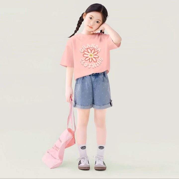3. Chất liệu : Áo thun cotton 4c, quần short jean mềm. Set đồ bé gái thiết kế cực xinh xắn, nổi bật với áo thun in họa tiết hoa đáng yêu kết hợp cùng quần short jean chấm bi trẻ trung, thời trang. Áo thun cotton 4 chiều co giãn mềm mại, thoáng mát – thấm hút mồ hôi tốt, phù hợp cho các bé vận động cả ngày dài. Quần short jean chấm bi lưng thun co giãn nhẹ, có thể điều chỉnh, mang lại sự thoải mái tối đa cho bé khi mặc. Form dáng hiện đại, năng động – bé có thể diện đi chơi, đi học, đi dạo phố hay du lịch đều rất nổi bật.