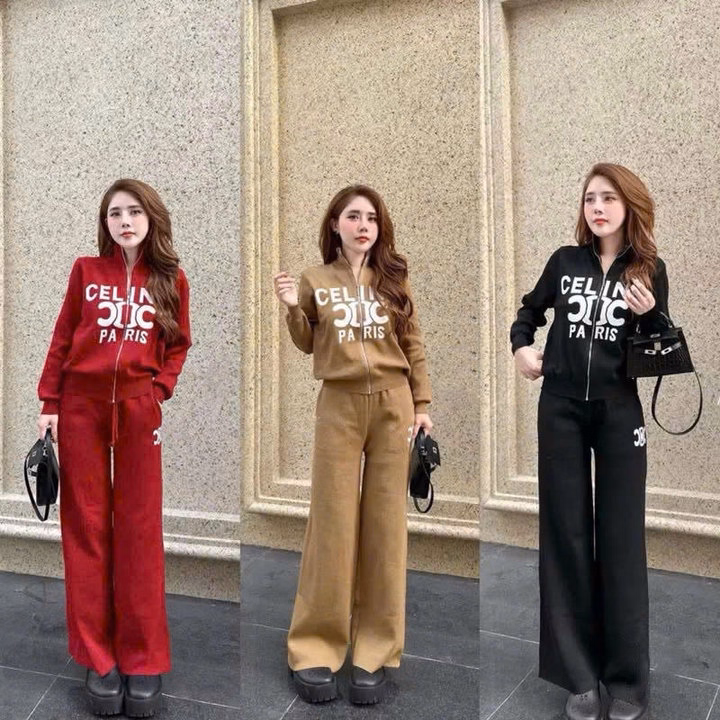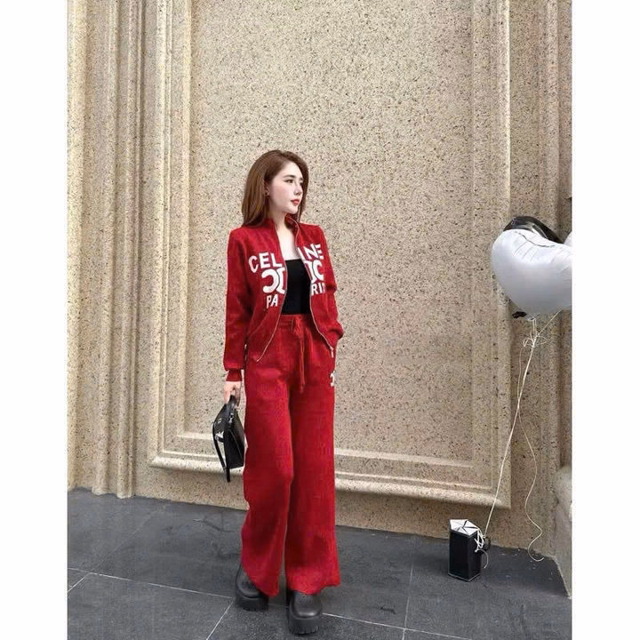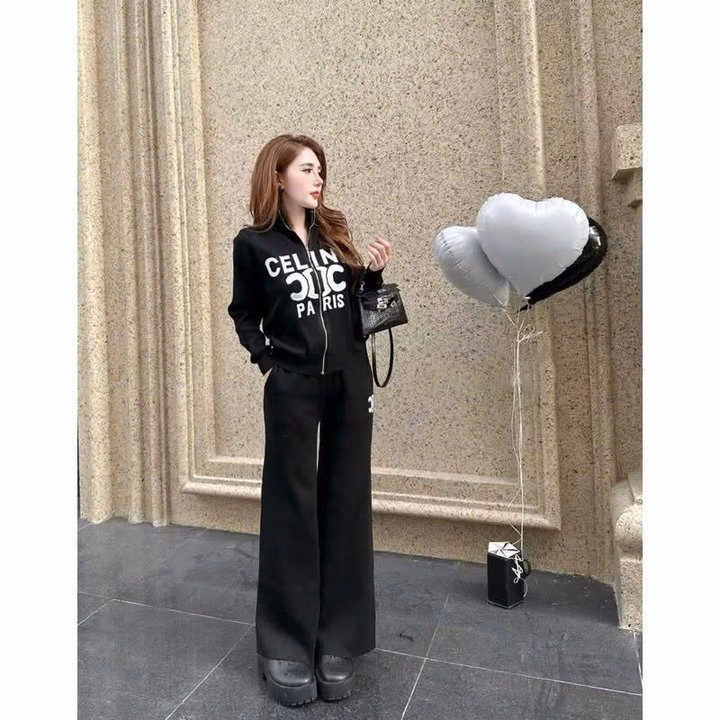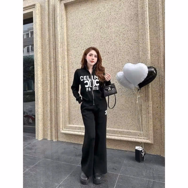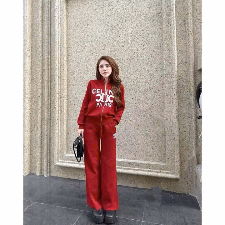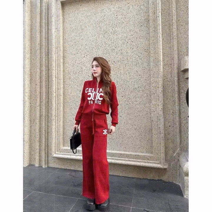 Set Đồ Bộ Nỉ Nữ Thiết Kế Khóa Kéo In Chữ Celin – Htm Fashion