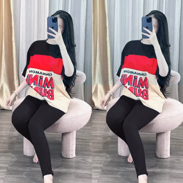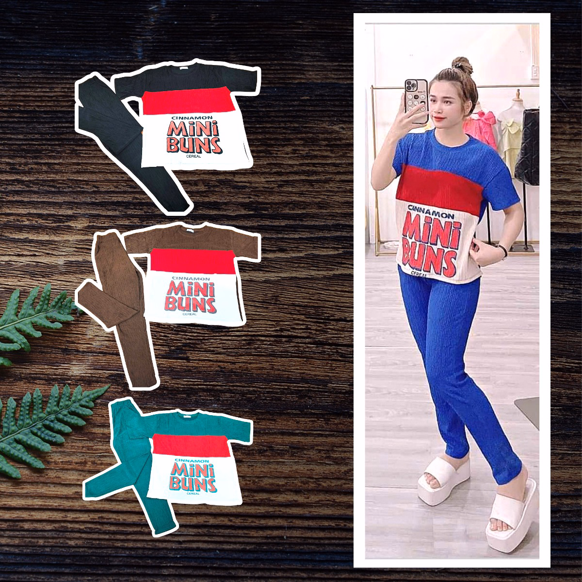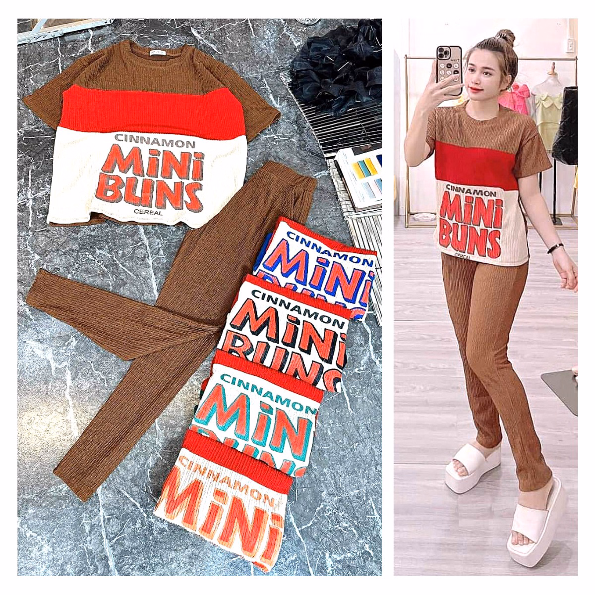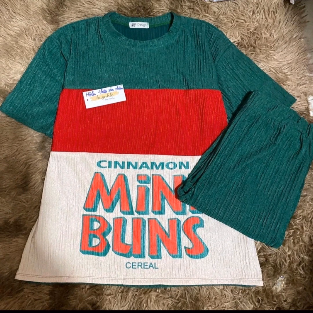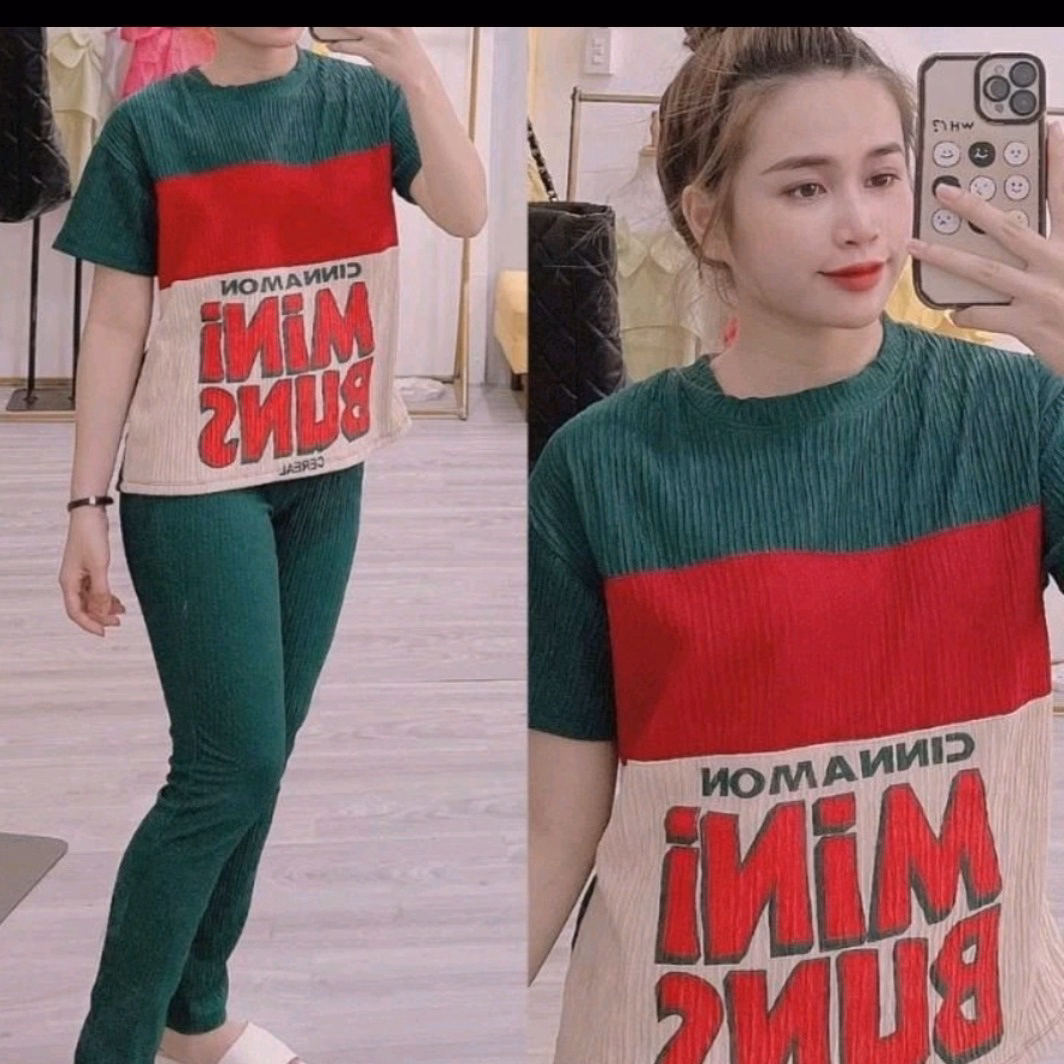 Set Đồ Bộ Nữ Chất Thun Nhật Phối Chữ 40 – 65Kg In Logo Mini Blins – Shop Mẹ Bống