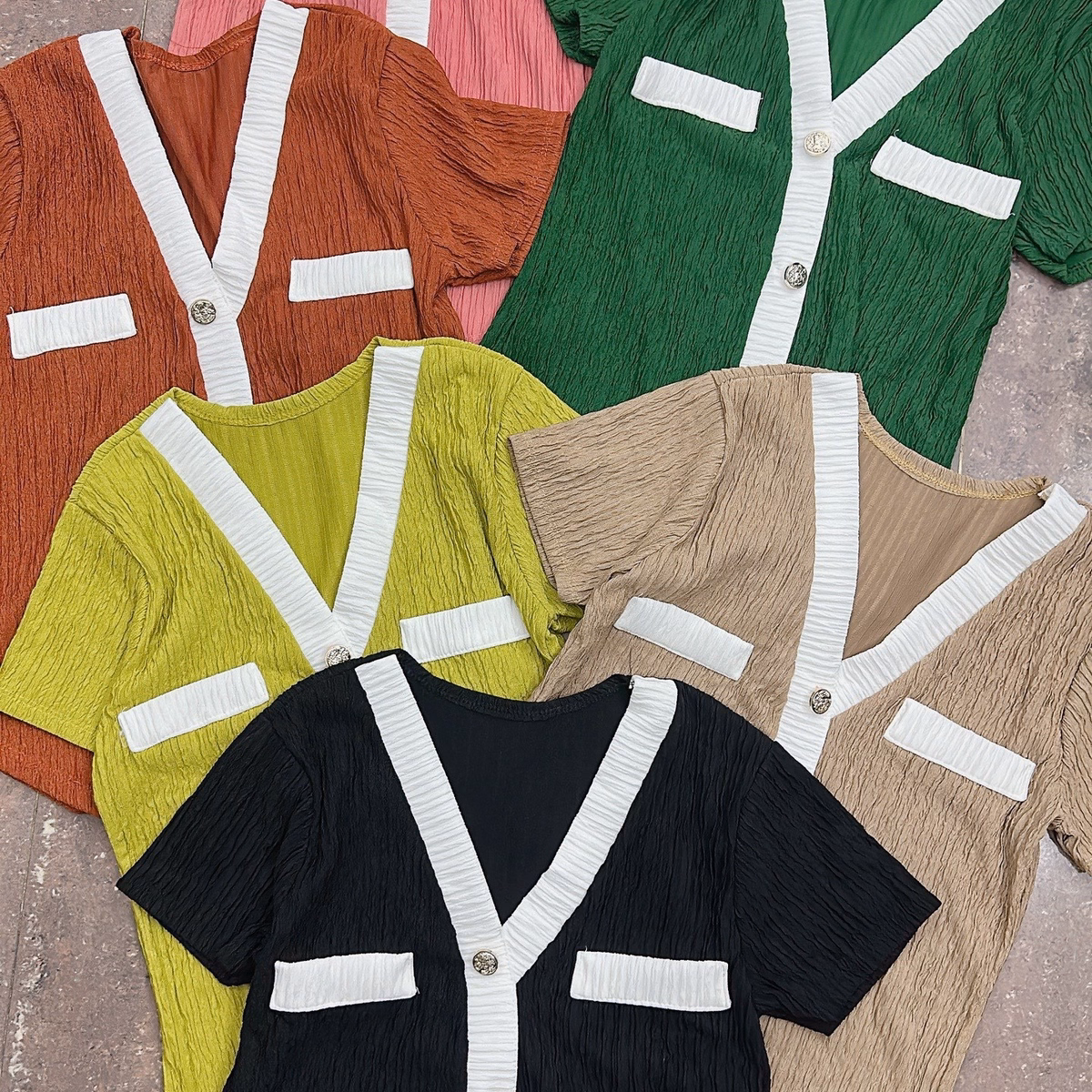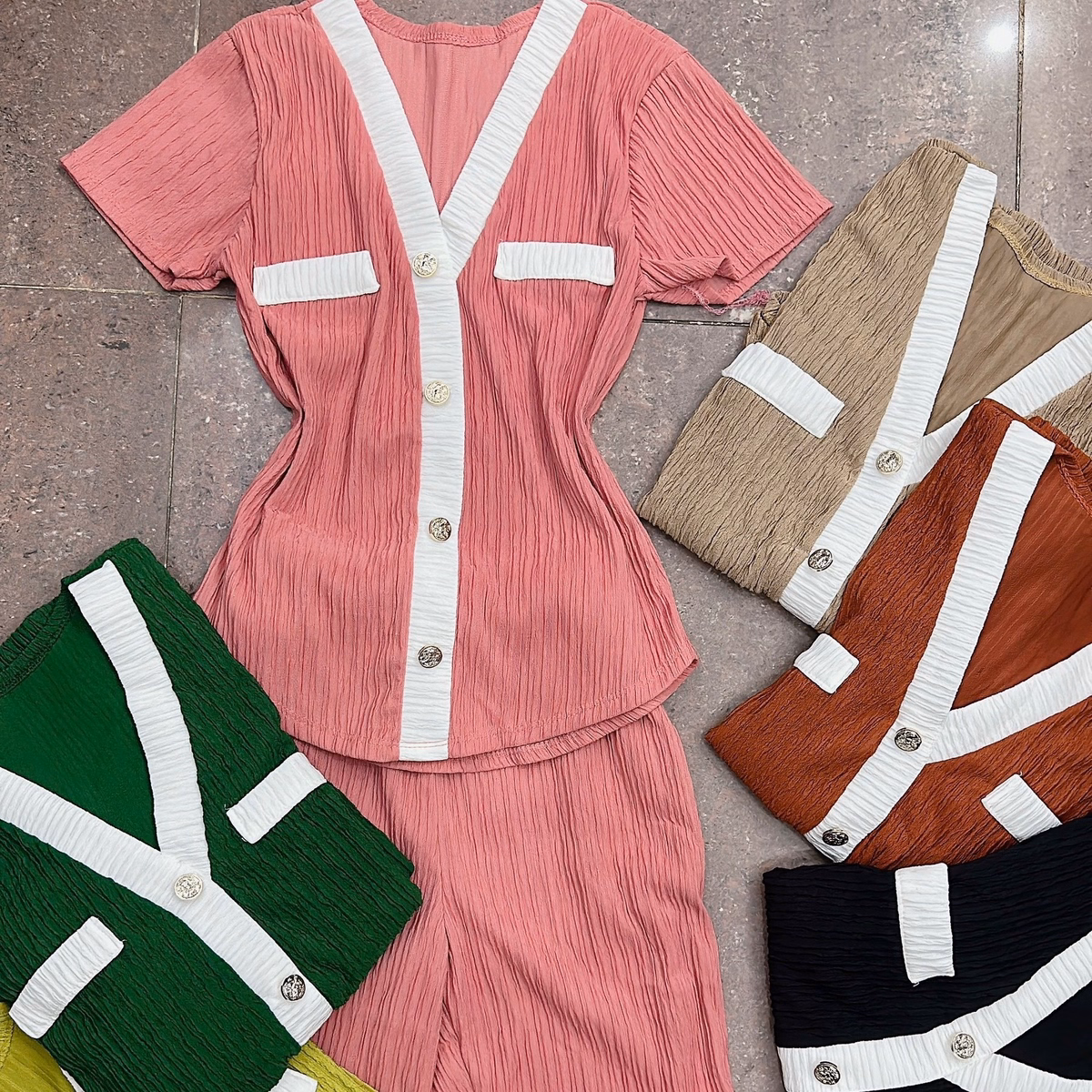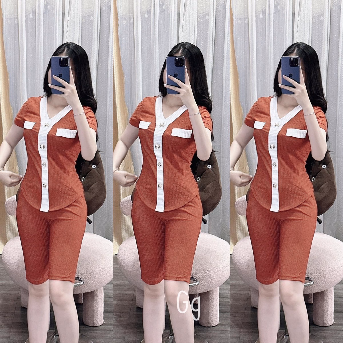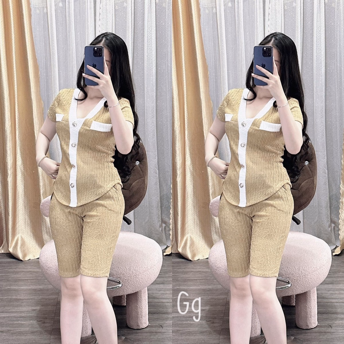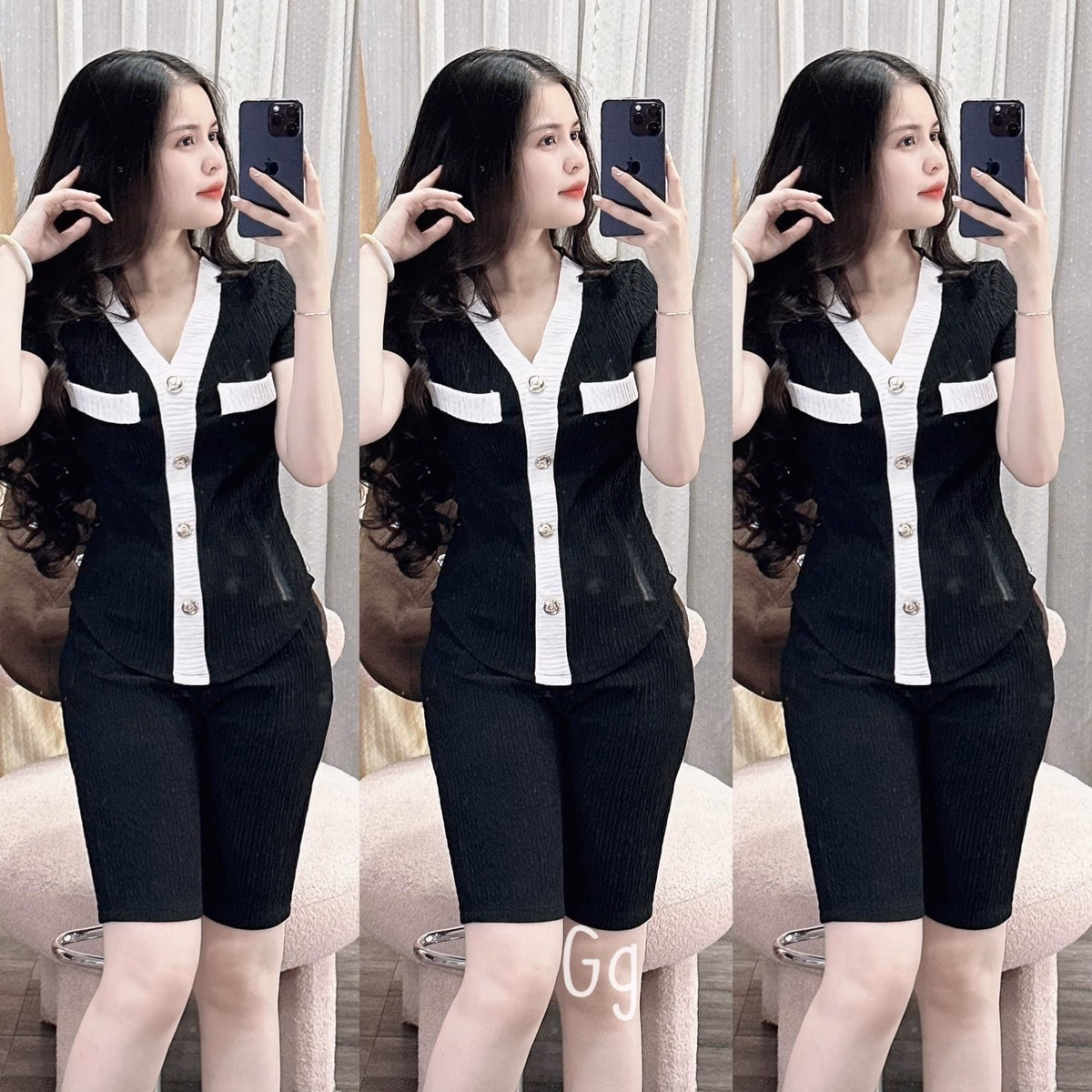 Set Đồ Bộ Vải Xốp Ngố Viền Cổ Trắng Hàng Quảng Châu- Ausa House