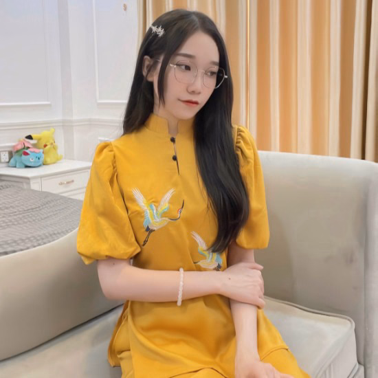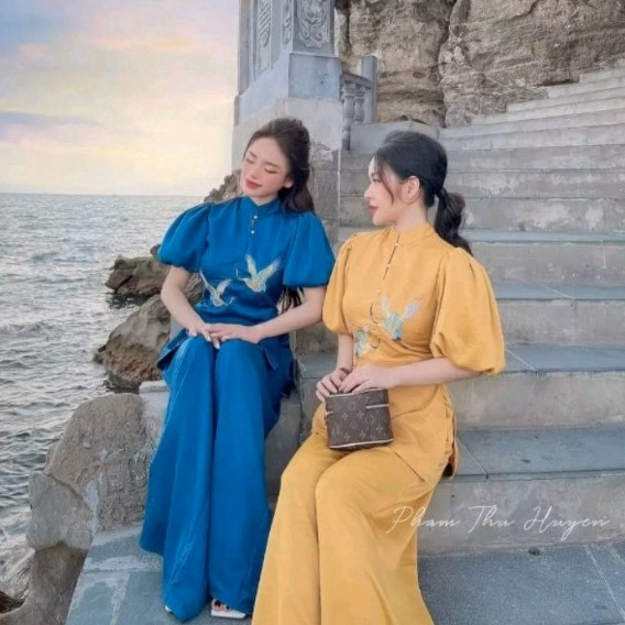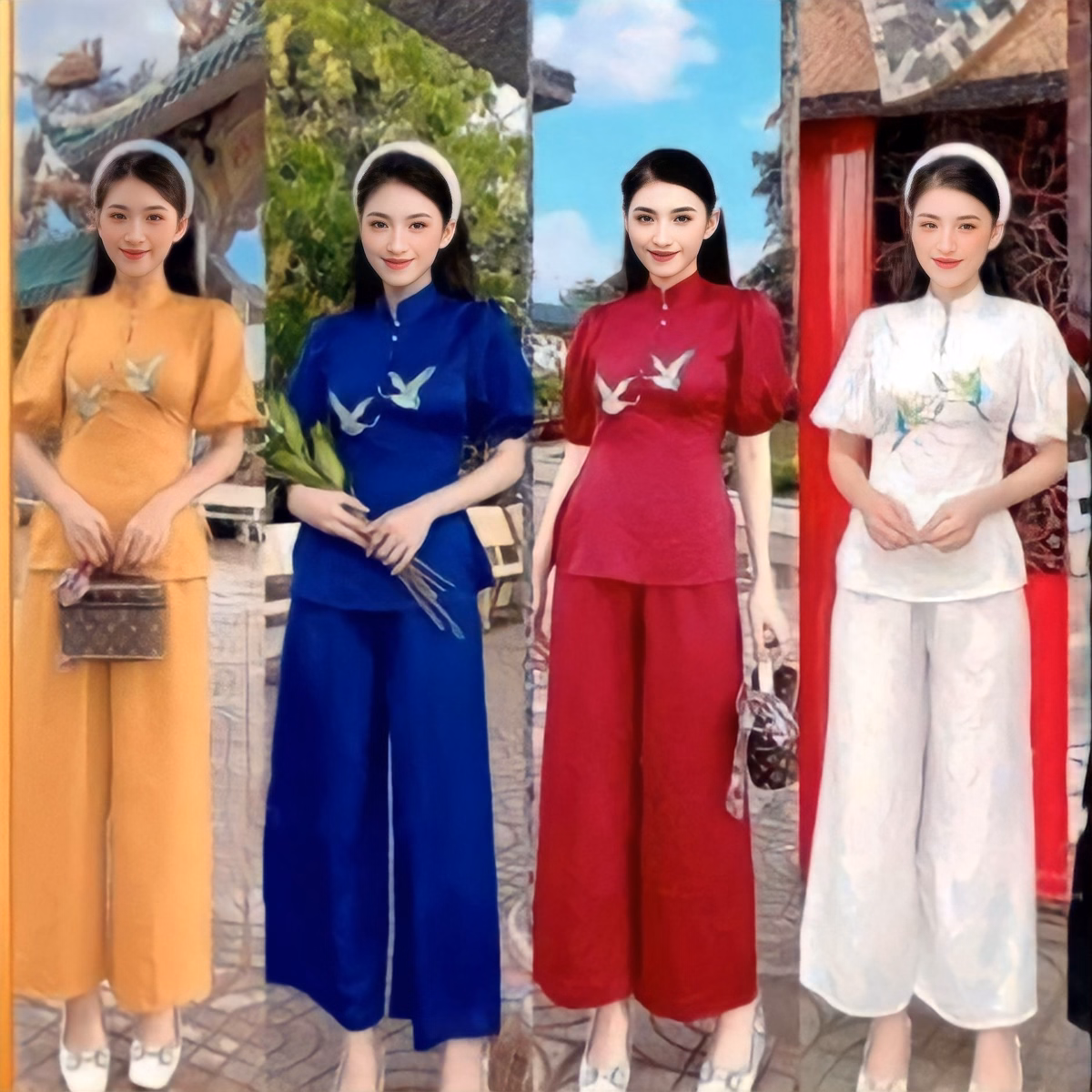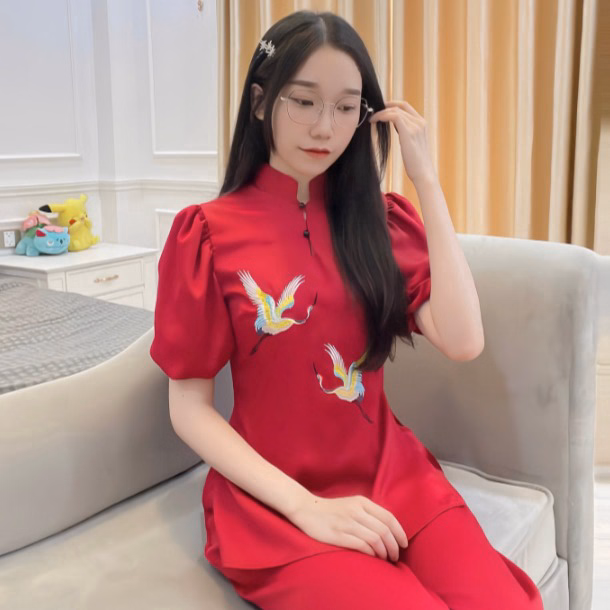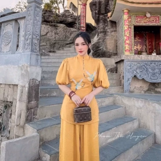 – Áo thiết kế cổ trụ tay phồng trang trọng kính đáo kèm họa tiết đôi hạt uyên ương cực đẹp