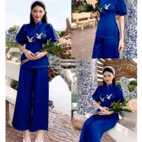 Bộ Đồ Lam Đi Lễ Chùa, Áo Dài Cách Tân Cao Cấp – Shop Mẹ Bống