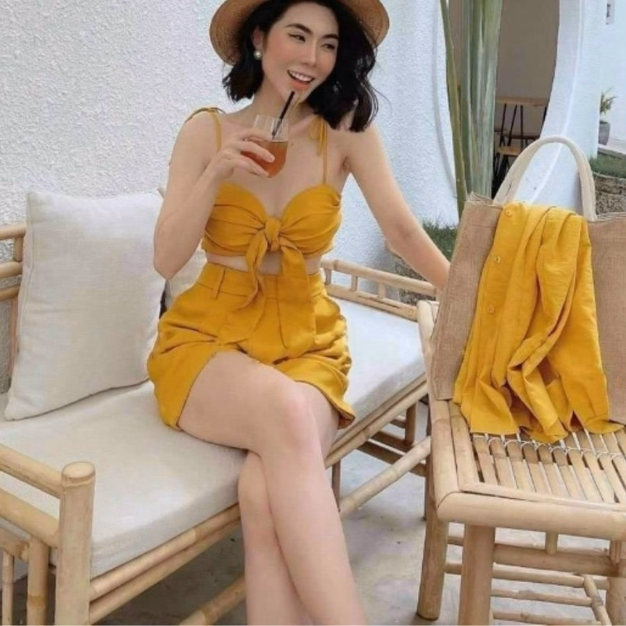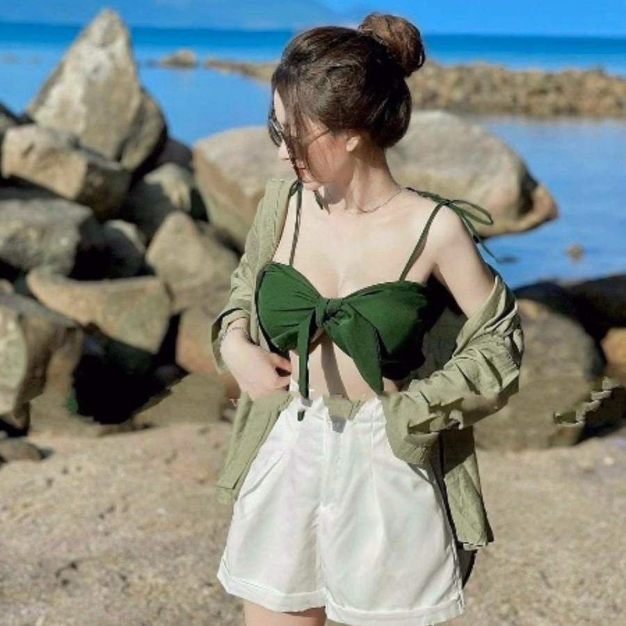 Tên sản phẩm: Set Đồ Nữ 3 Món Đùi Áo Trong Cột Nơ (Có Mút Thêm Màu Cho Rộn Ràng ) V994H – Aine