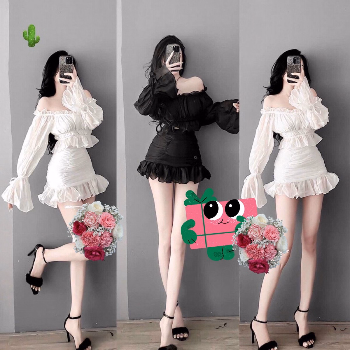 Set Đồ Nữ Áo Bẹt Vai Dài Tay Phối Chân Váy – Ausa House