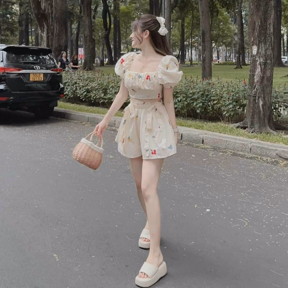 Tên sản phẩm: Set Đùi Nhún Thun Áo Mockinh Thân Sau (Có Mút) Quần Có Lót V969H – Aine
