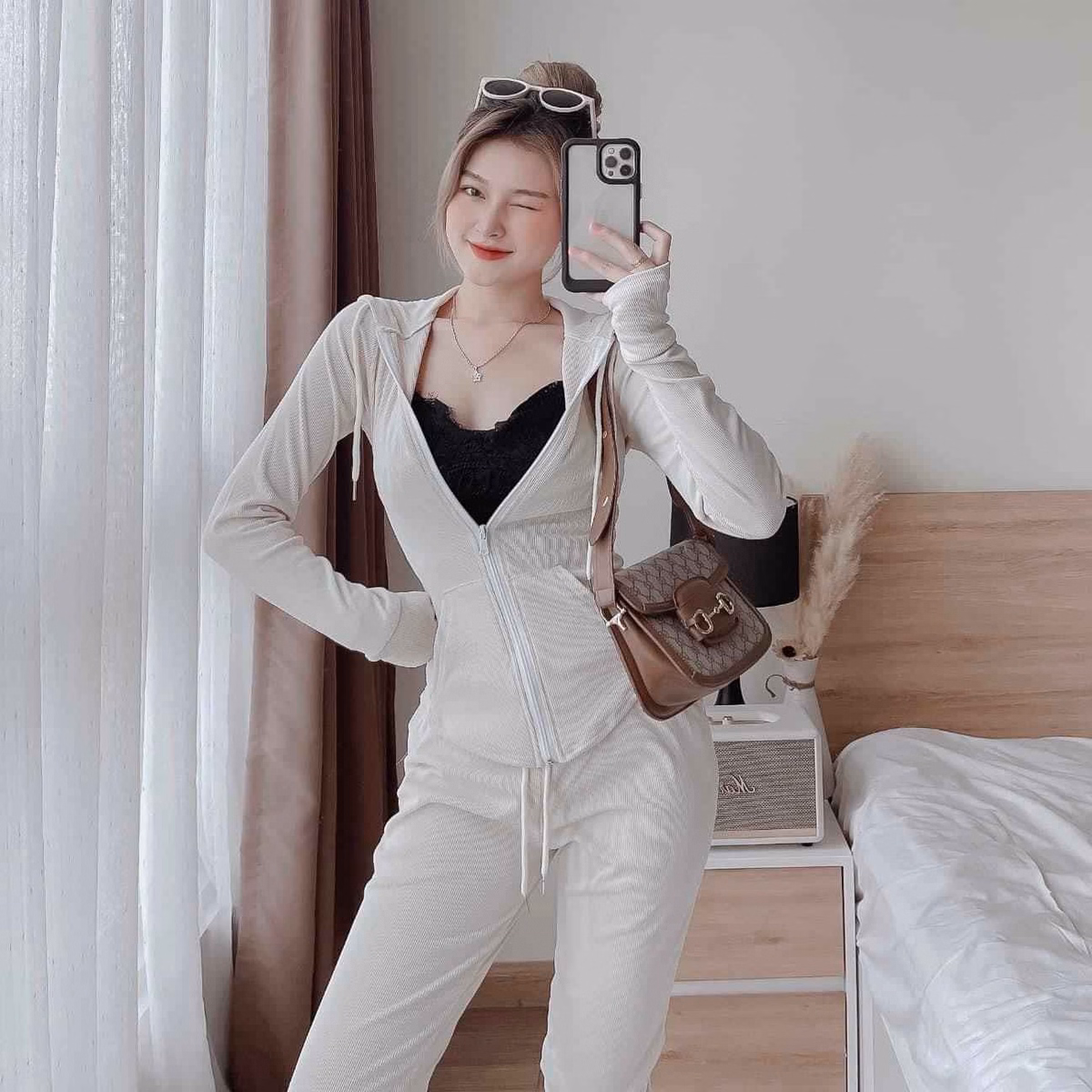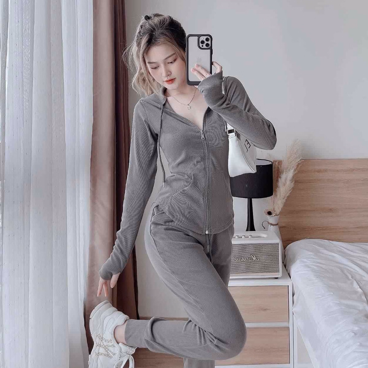 Set khoác gân không kèm áo lót, quần có túi chất liệu thun gân xịn mịn, tạo cảm giác thoải mái cho người mặc.