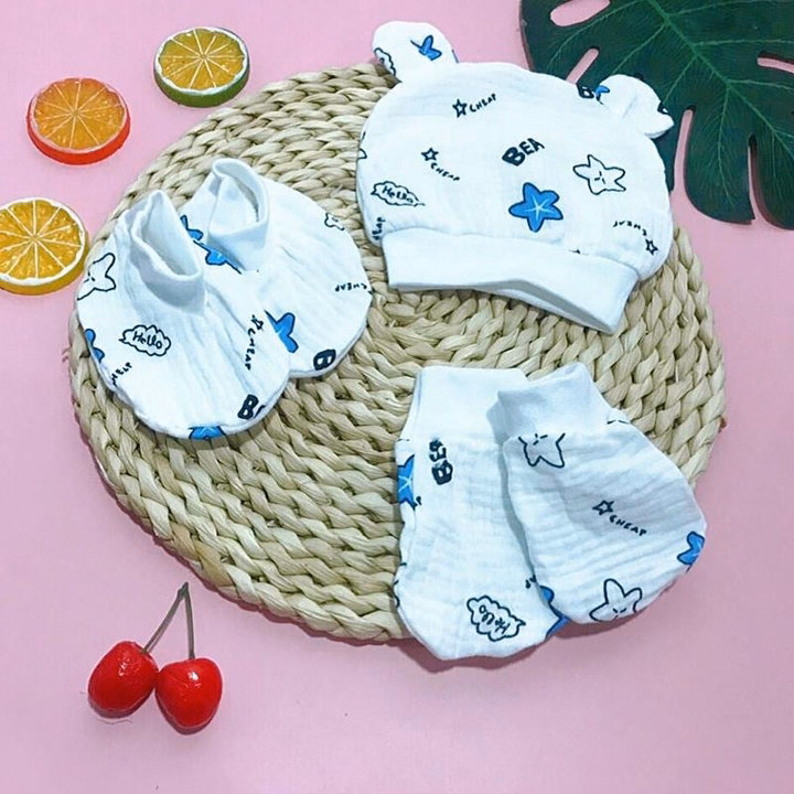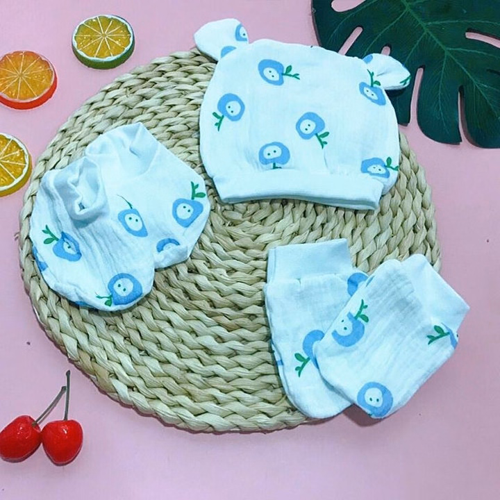 Bộ mũ và bao tay chân cho bé sơ sinh