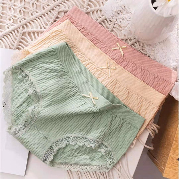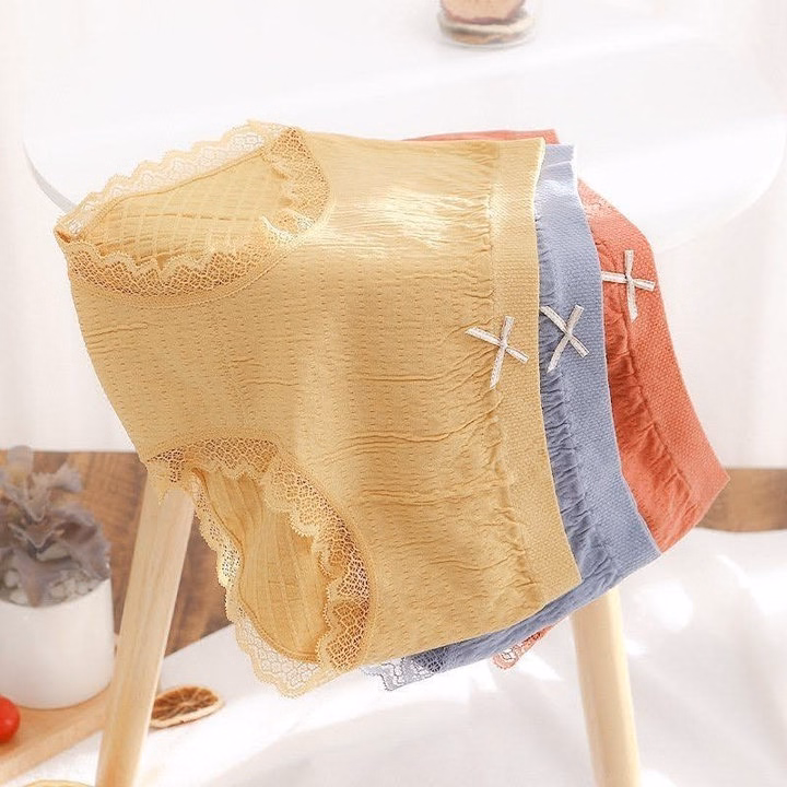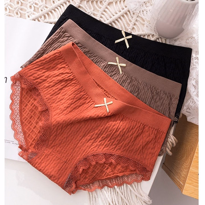 Tên sản phẩm: Quần Lót Nữ Cotton Nhún Chất Dệt Kim Viền Ren Thông Hơi Kháng Khuẩn