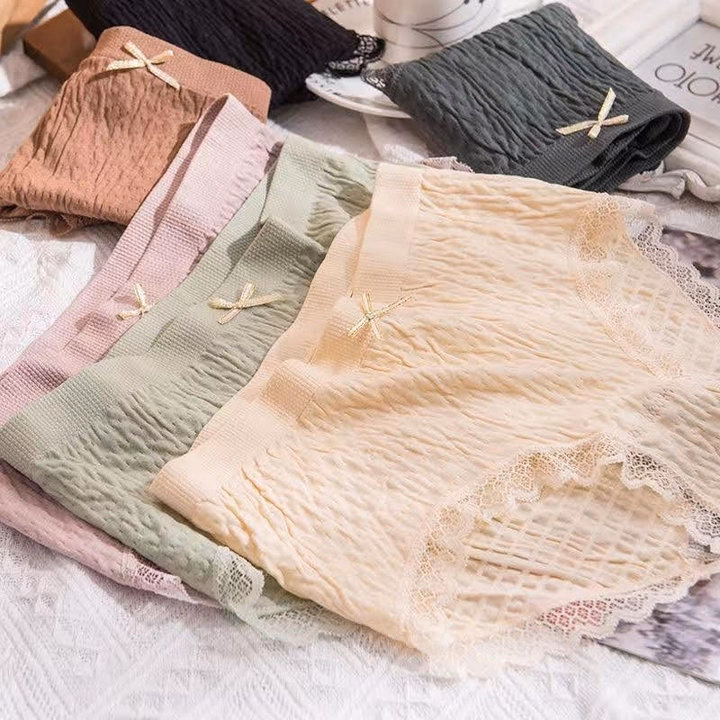 Quần Lót Nữ Cotton Nhún Chất Dệt Kim Viền Ren Thông Hơi Kháng Khuẩn
