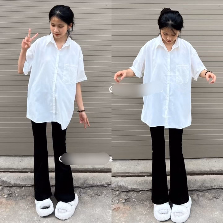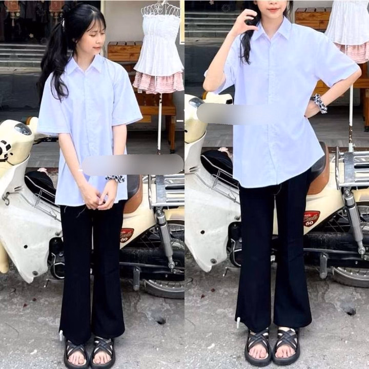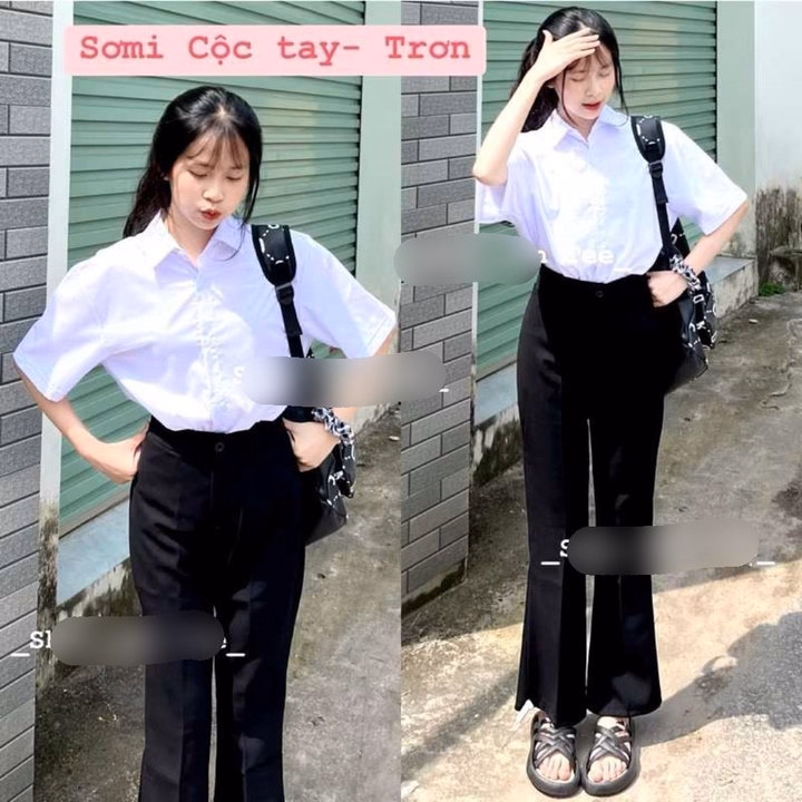 Sét Quần Ống Loe Umi Đen + Mix Áo Sơ Mi Trắng Cọc Tay