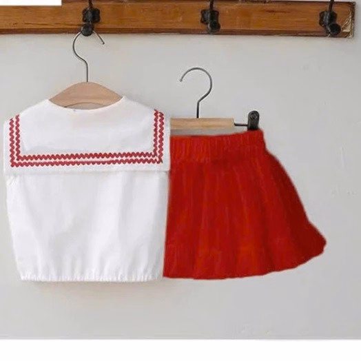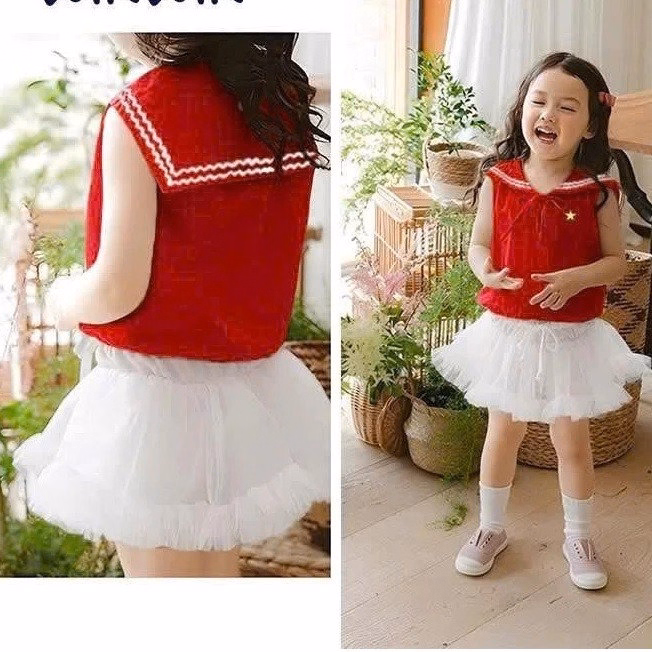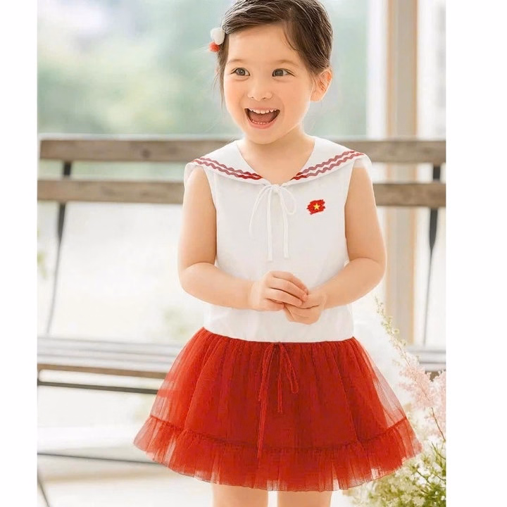 Set Váy Cờ Đỏ Sao Vàng – Áo Thủy Thủ Kate Cotton + Váy Lưới Từ 12-36kg Dành Cho Bé Gái