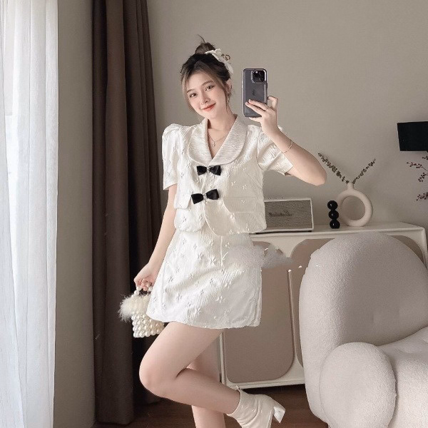 Tên sản phẩm: Set Váy Gấm Đính Kèm Nơ Nhỏ Cá Tính V368 – Haka Mây