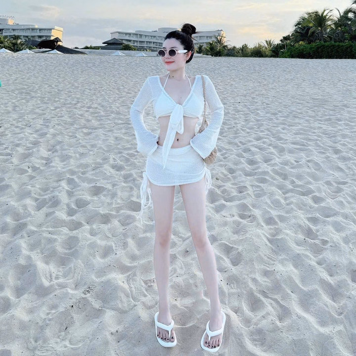 Set Váy Len Ren Áo Dài Tay Dáng Lửng Buộc Nơ Mix Chân Váy Ngắn Siêu Xinh Đi Biển