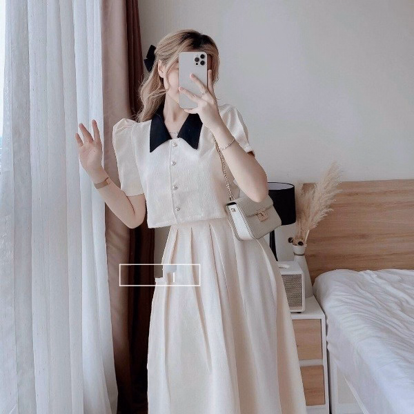 Tên sản phẩm: Set váy tapta kiểu Nhật tiểu thư sang chảnh V75 – Cloudy Dress