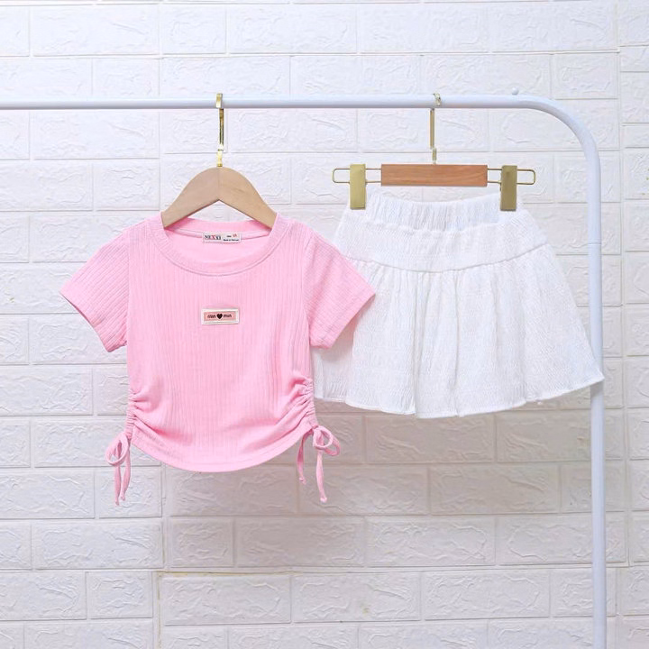 Set Váy Thun Gân Áo Đính Logo Min Min Bé Gái Từ 12-45kg Cho Bé Gái